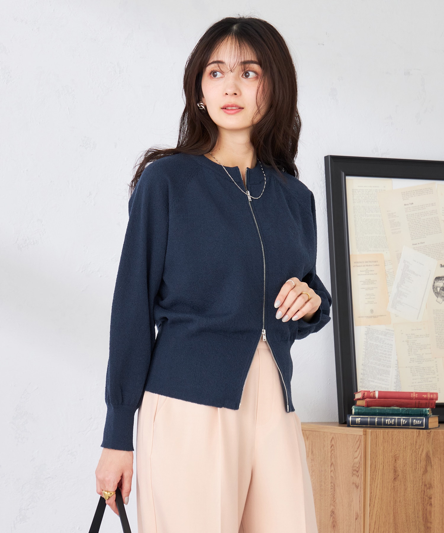 ブルゾン型ニットカーディガン。