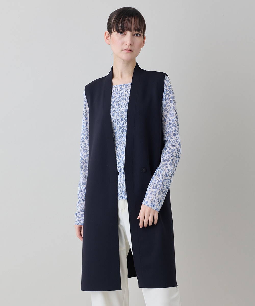 洗練された印象を演出するVラインデザインジレは、日本製の高品質な仕上がりと洗える便利さが魅力です。シンプルなワンカラーのスタイリッシュなシルエットは、どんなコーディネートにも自然に溶け込み、瞬時に着こなしの質を格上げします。シャープなVフロントと立ち上がり衿のデザインが、顔周りをすっきり見せ、洗練された印象を与えます。オフィスからカジュアルまで幅広く使える一着は、季節やシーンを問わず重宝します。シンプルながらも差別化を図るデザインで、毎日の装いに洗練と便利さをプラスします。