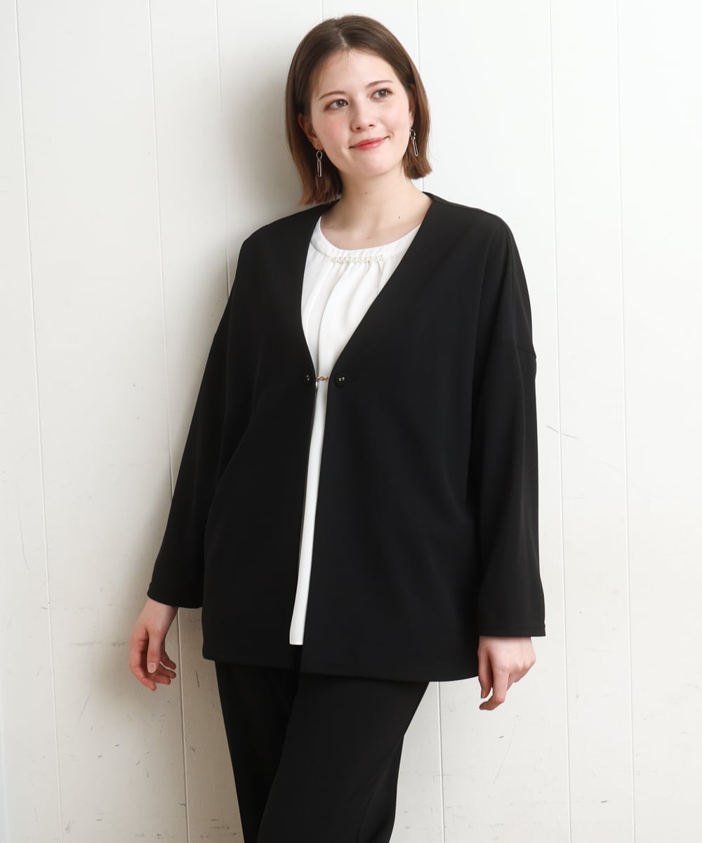 【大きいサイズ/2wayボタン/セットアップ対応】カットジョーゼットVネックジャケット