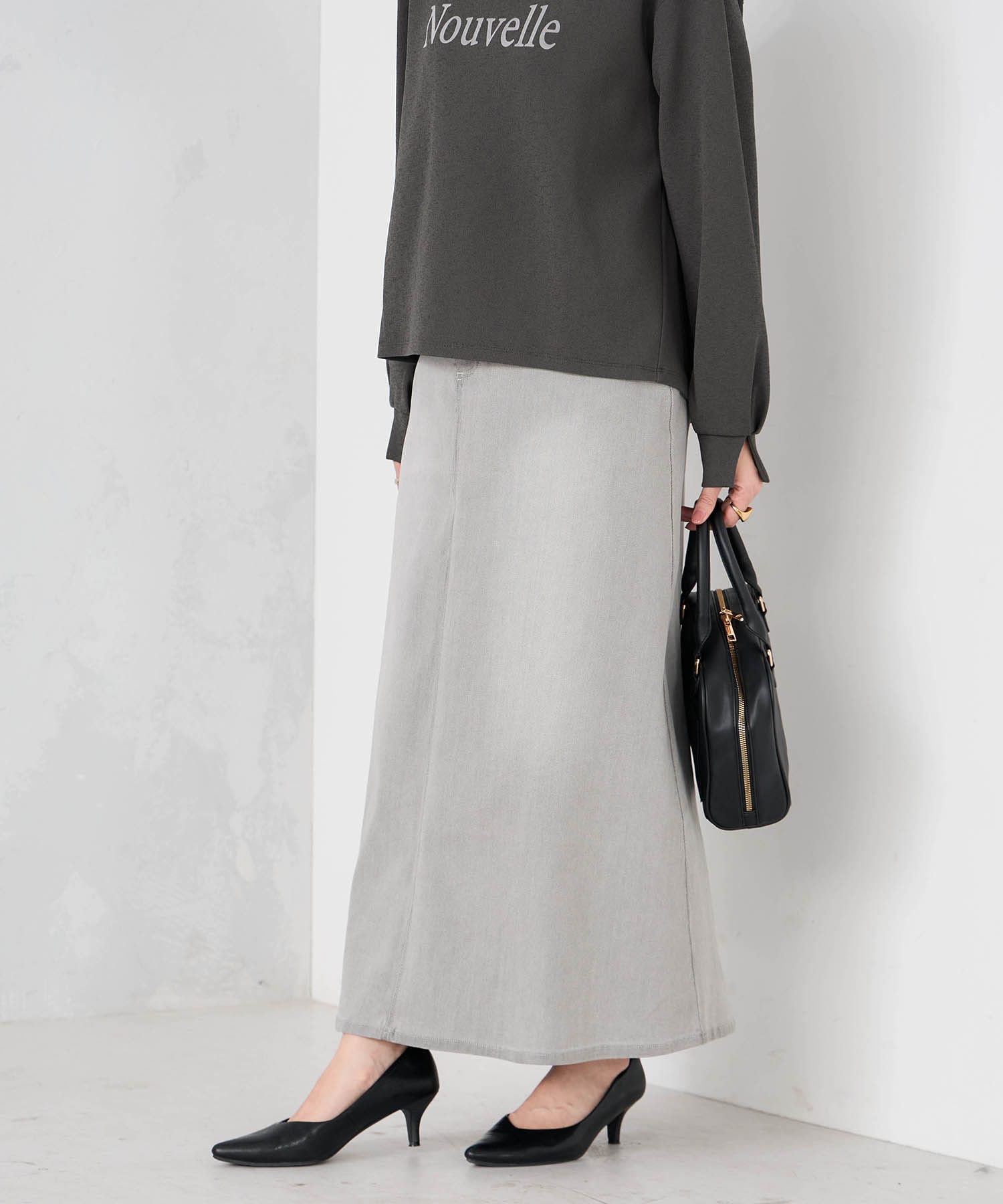 デニムスカートとスニーカーを合わせるだけの簡単コーデですので、ぜひ挑戦してください