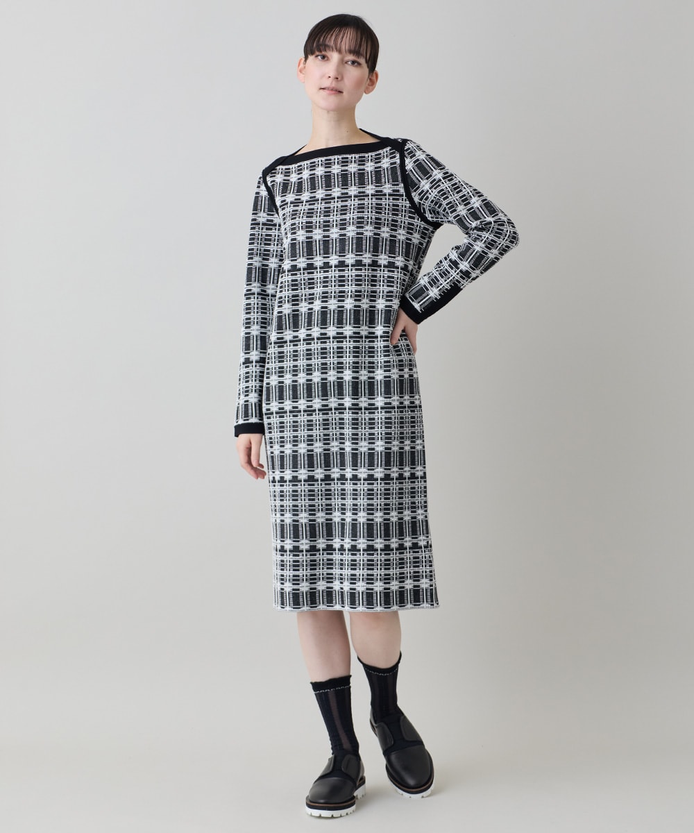 『チェックジャカードニットワンピース』