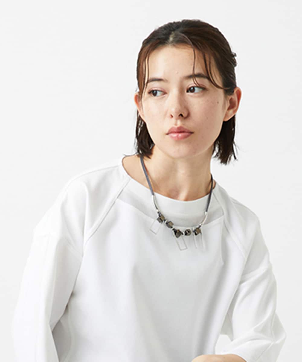 シフォン袖と細やかなマジョリカプリーツが華やかさを演出し、伸縮性もあり着心地いいですよ♪