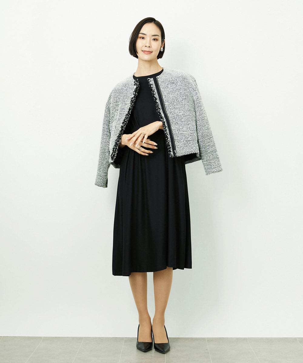 きちんと感がありながら、程よく流れるドレープとストレッチ素材で、着心地の良さを両立。