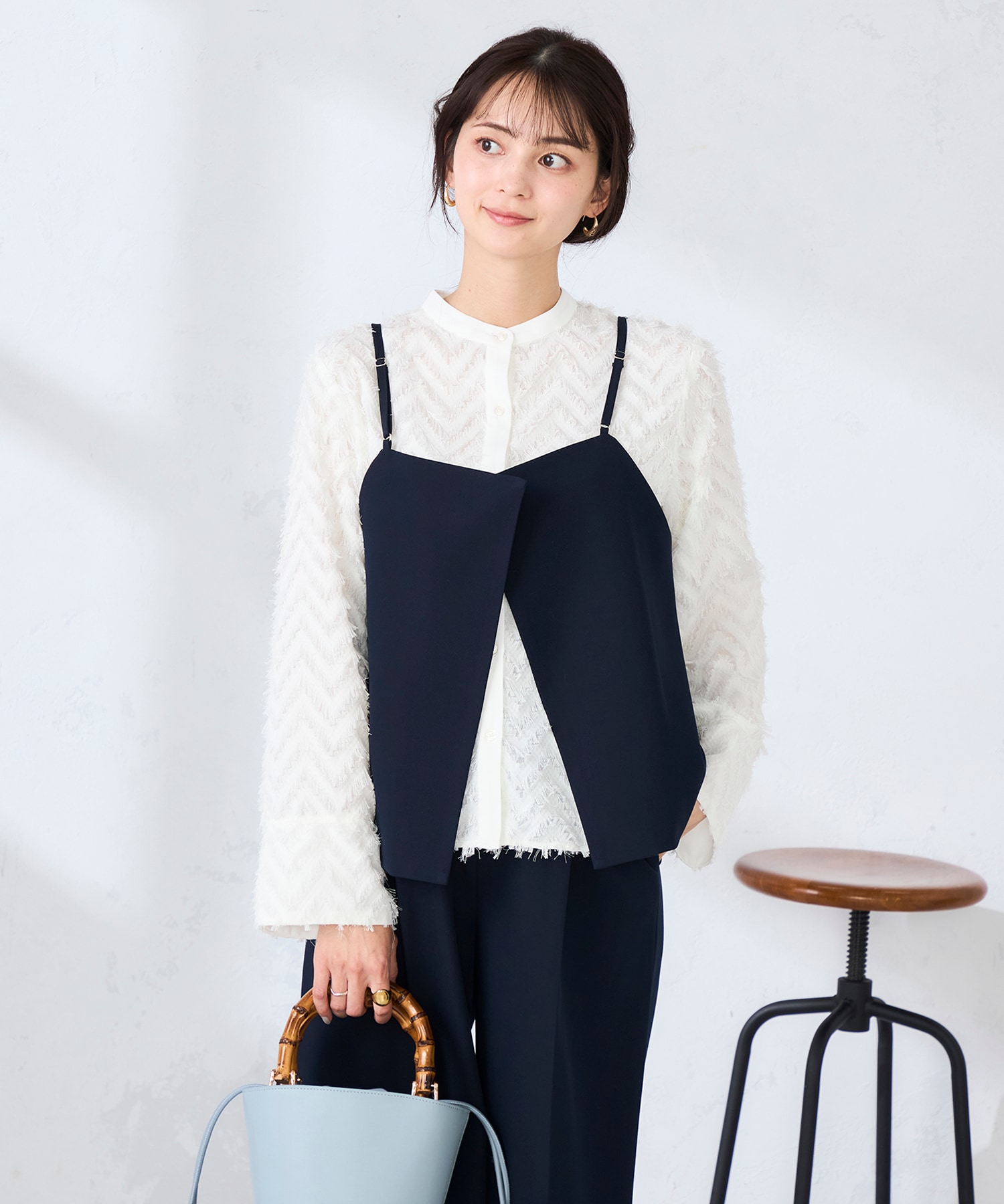 【洗える】ビスチェ ×ボートネック美ラクるパフスリーブニット×ハイウエストワイドパンツ