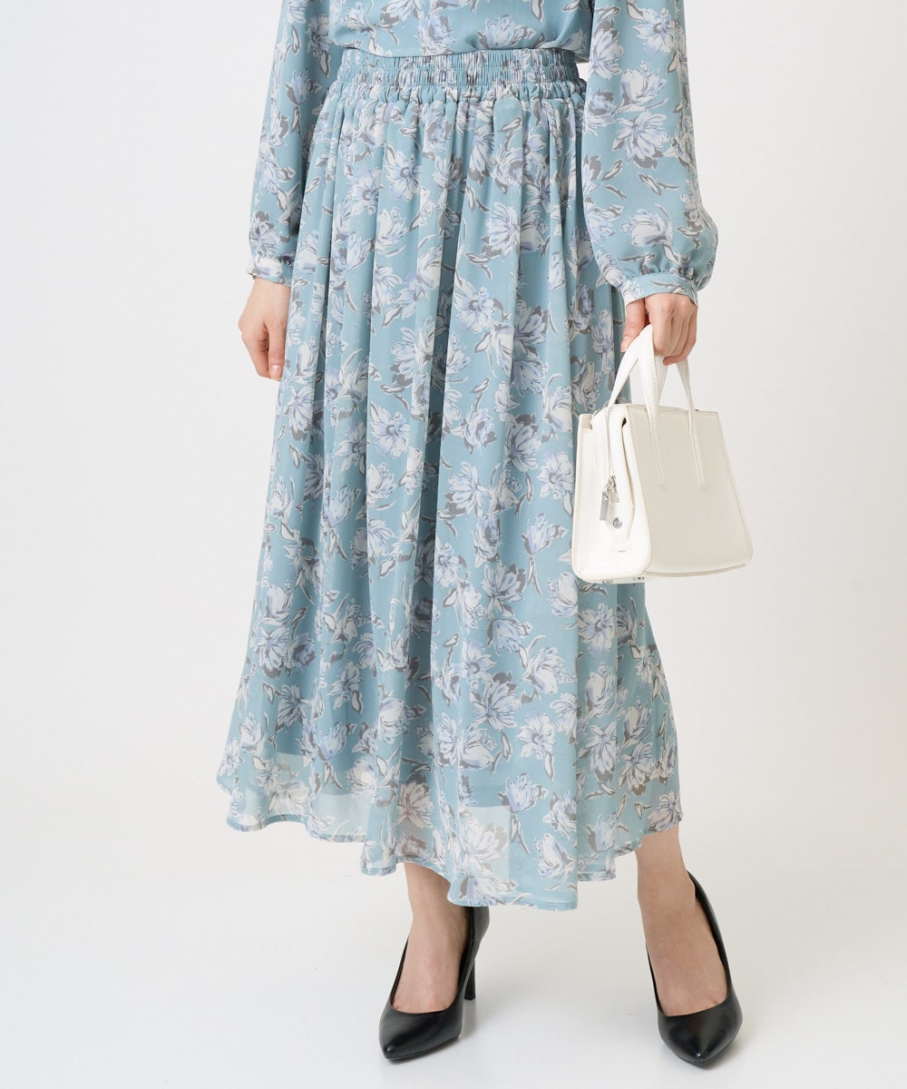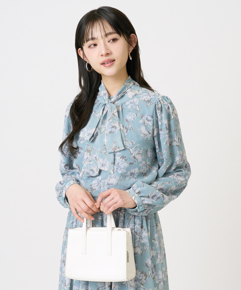 【小さいサイズ】ボウタイ付き花柄シフォンブラウス/洗濯機で洗える