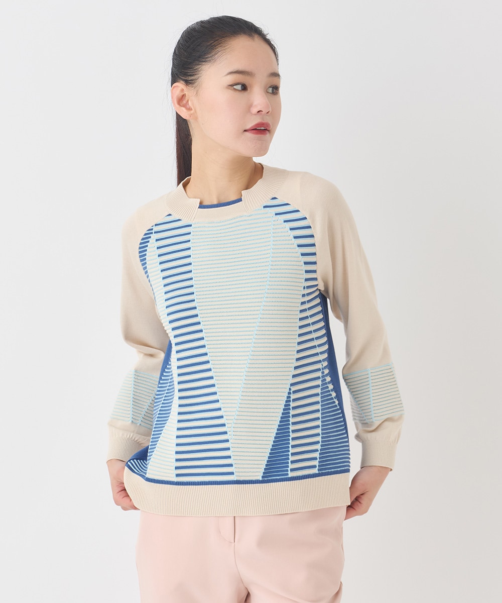 コットン素材をブレンドしたやや薄手に仕上げた軽やかなニット。