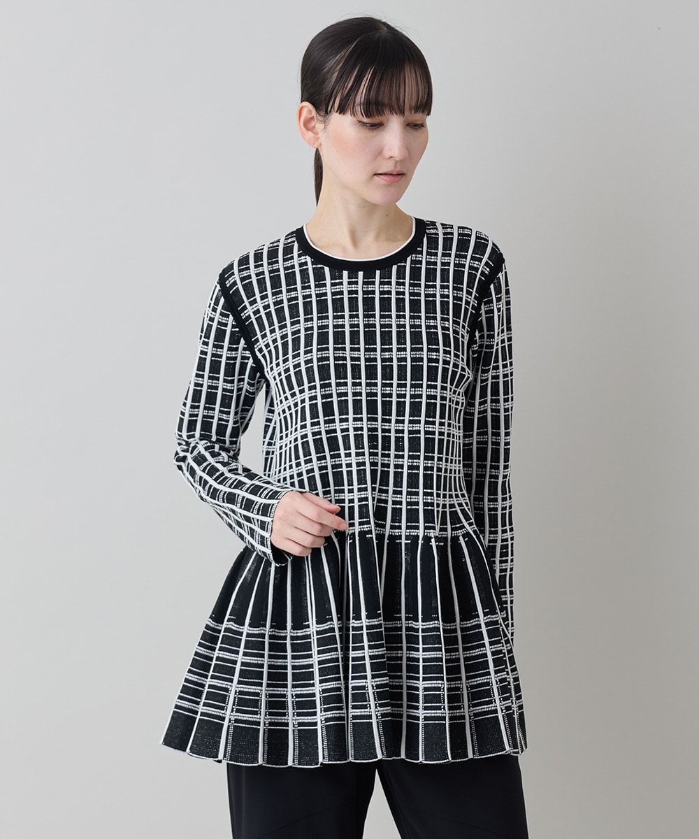 チェックジャカードのチュニックは、グラフィカルな柄と立体的なヘムデザインが個性を演出し、表情豊かに着こなせます。