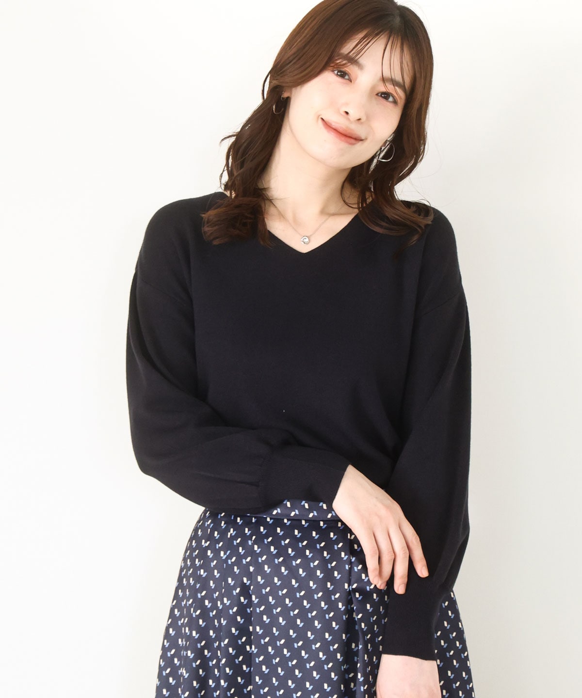 すっきりしたVネックの定番ニットです。肌触りがとても良く、コンパクトなサイズでボトムも選びません。