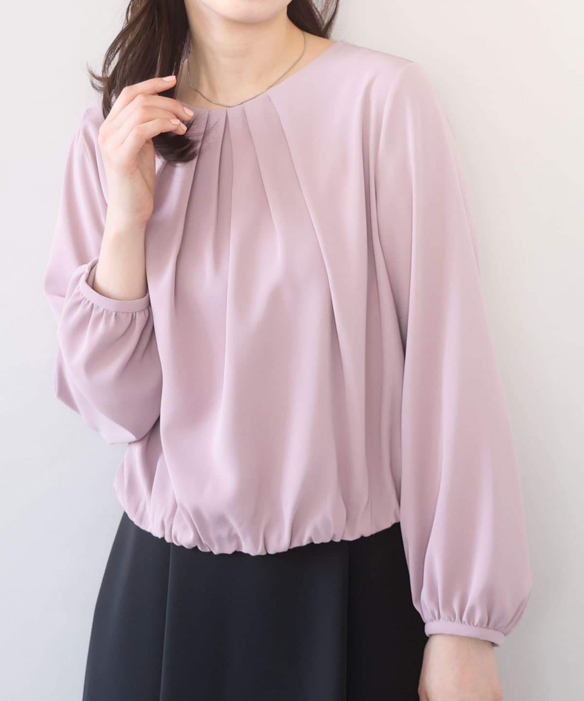 タックデザインジョーゼットブラウス(長袖)/UVカット/接触冷感/洗える