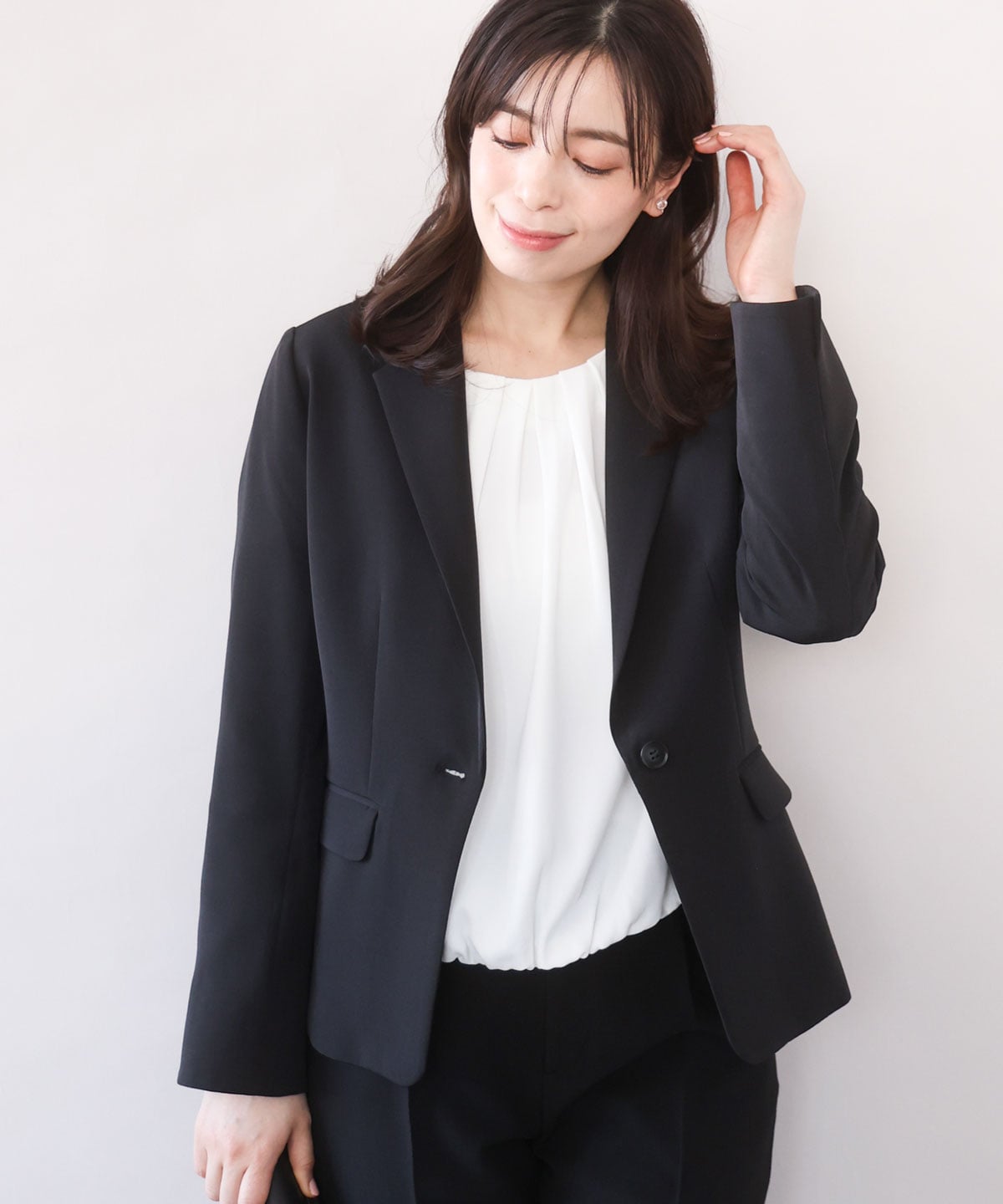 ほどよく伸びるダブルクロス素材で、きちんと見えと着心地を両立。