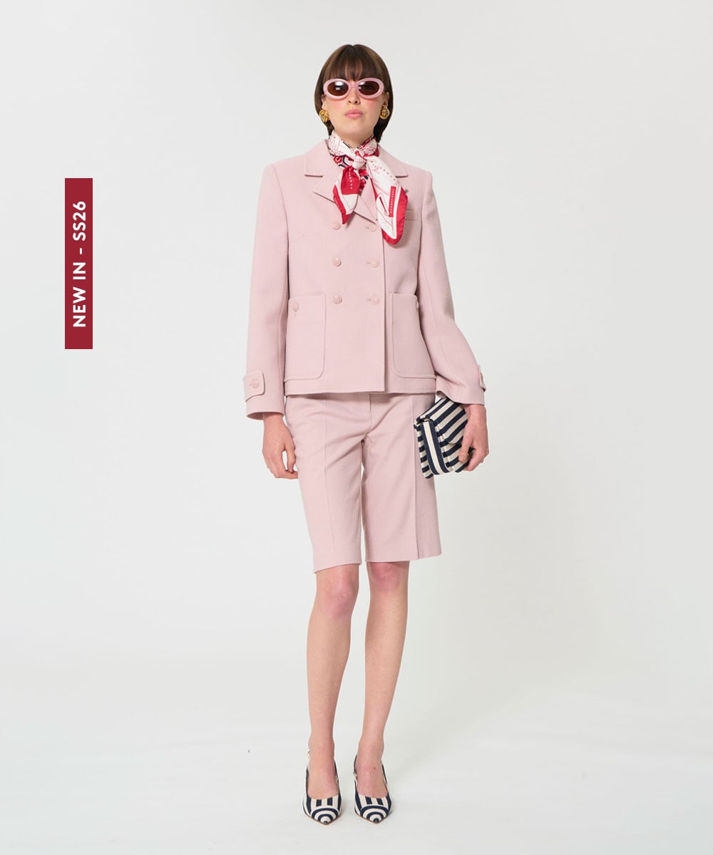 綺麗なピンクカラーのブレザー風ジャケットです。