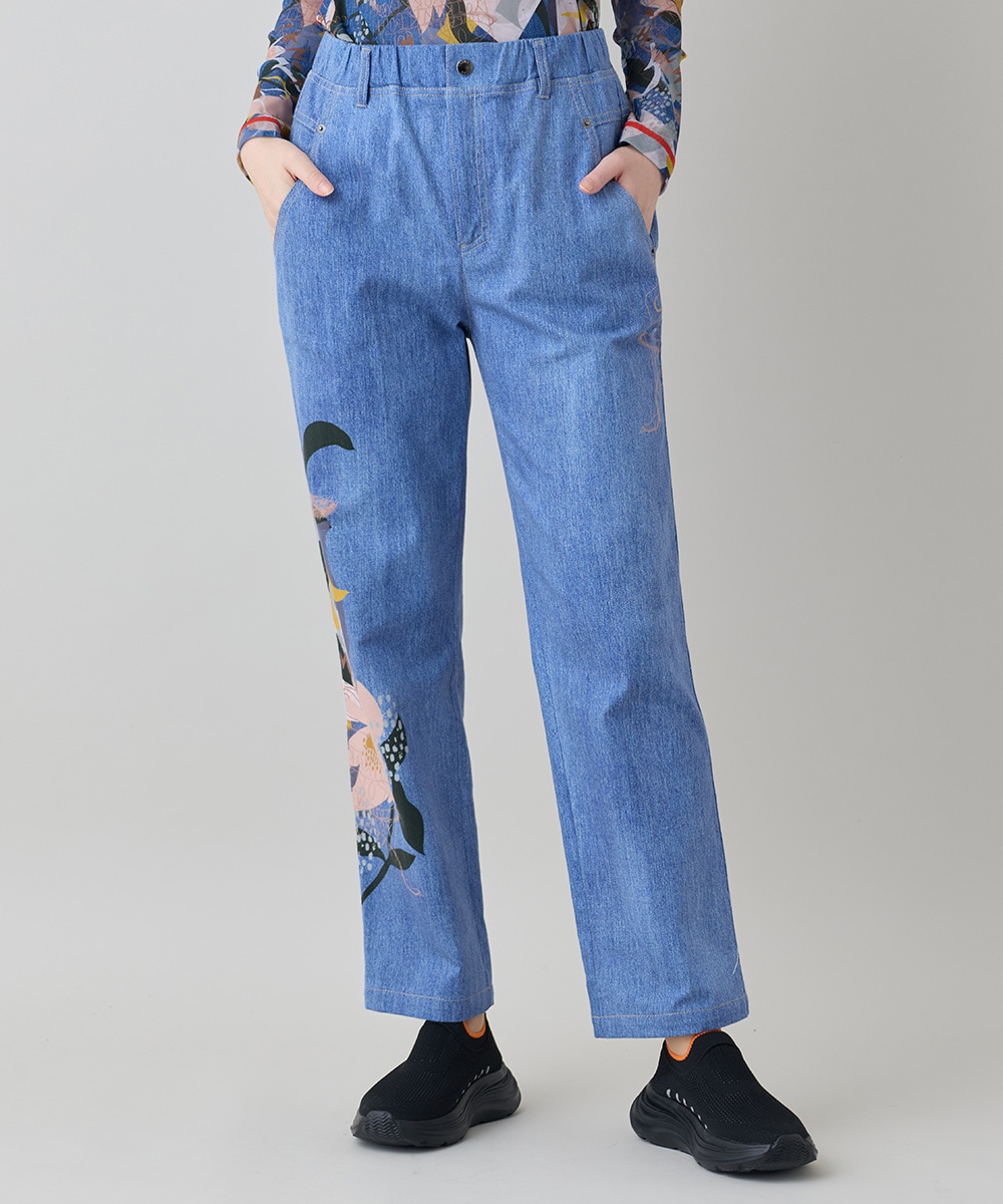 少し浅めの股上、程よくゆとりのあるシルエット、ウエストバックゴム使用、大人女子に楽しんでいただけるデザインになっています。