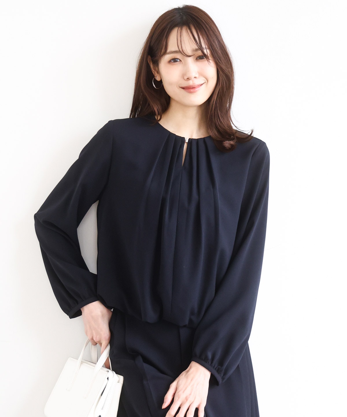 着回しやすさときちんと感を両立し、オフィスカジュアルからフォーマルシーンまで幅広く対応可能です。
