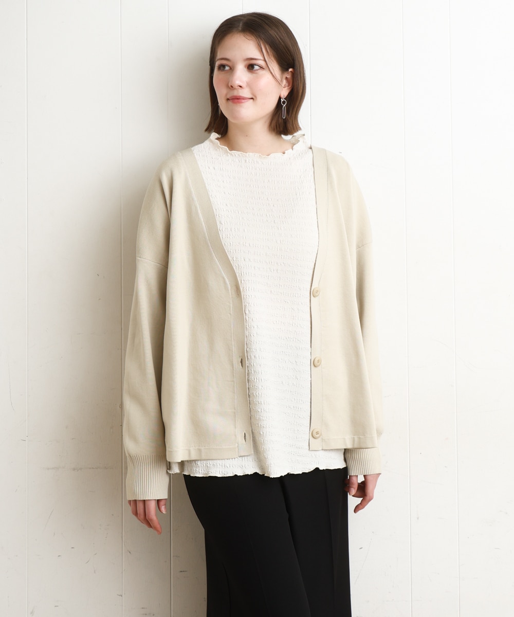 大きめですが比較的短め着丈と両サイド裾がカーブになっているのでバランス取りやすくスッキリ着用出来ます。