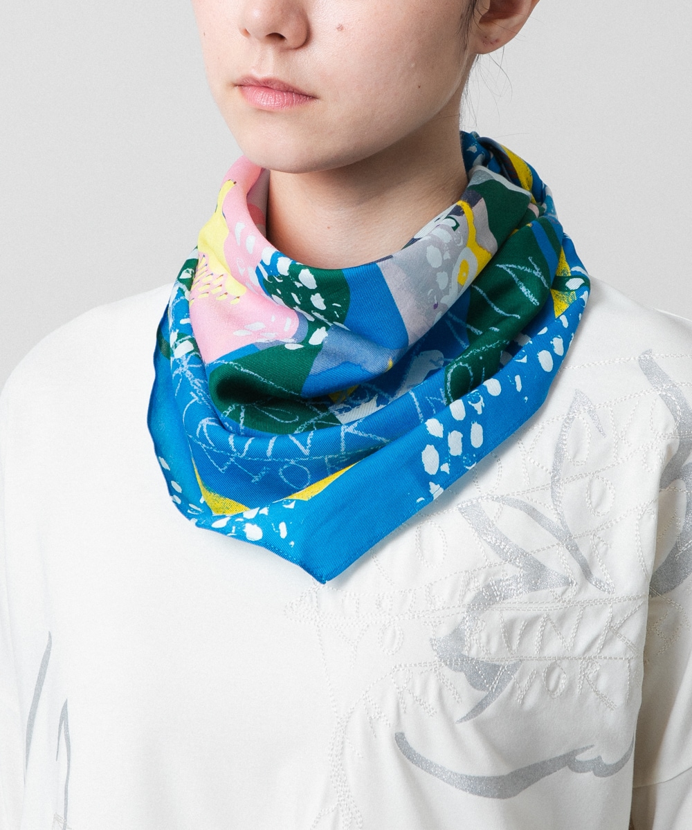 コーデのアクセントとなるコラージュプリントが春を感じ華やぎをプラス