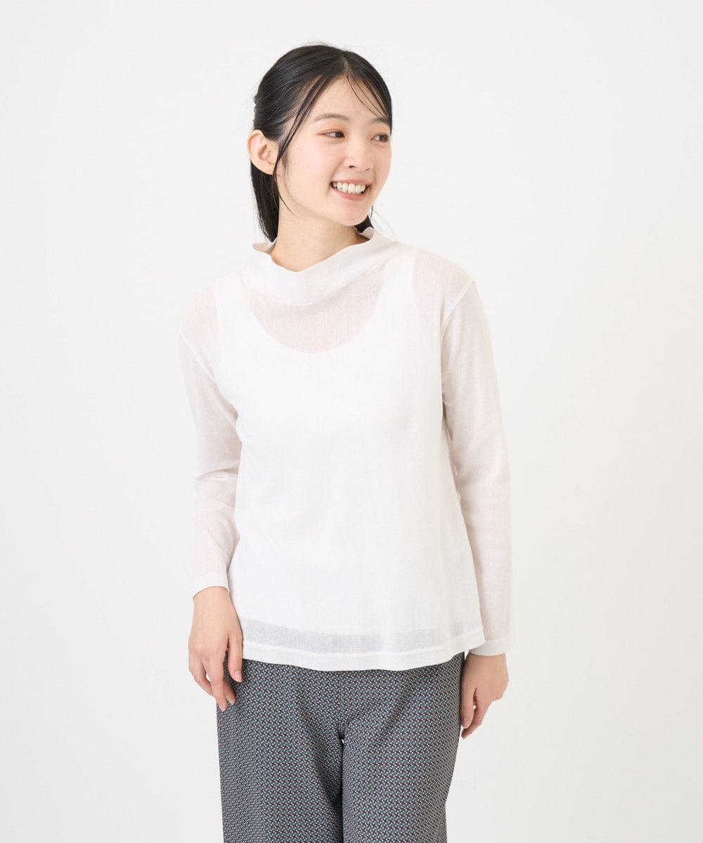 程よい透け感が上品で、コーディネートに軽やかさをプラスしてくれる一枚です。シンプルなデザインのハイネックなので、ニットやジャケットのインナーとして重ねてもすっきりとまとまり、いつものスタイリングがぐっと華やかな印象になります。