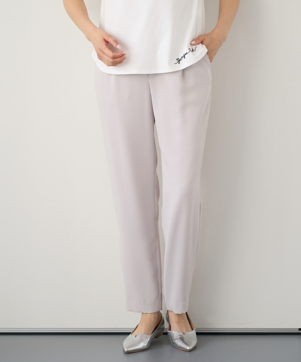 とろみ素材が脚のラインを美しく見せ、ウエストゴム仕様でストレスフリーな穿き心地を叶えます。