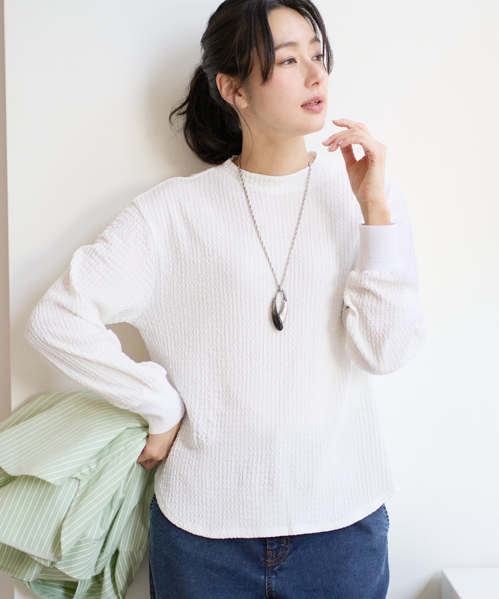 中に着ているコットンリネンベストは、カラーミックスが楽しい爽やかベストです。