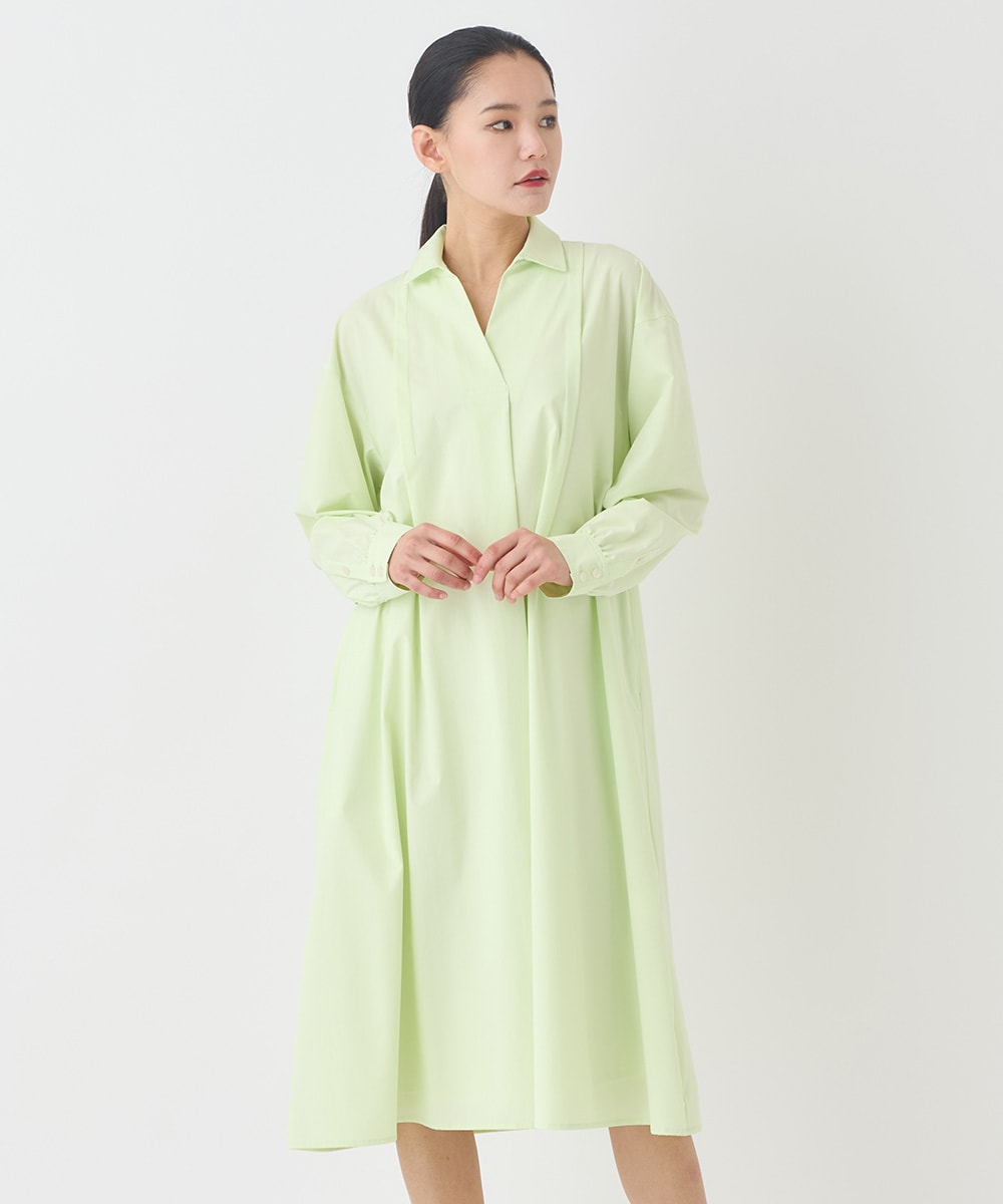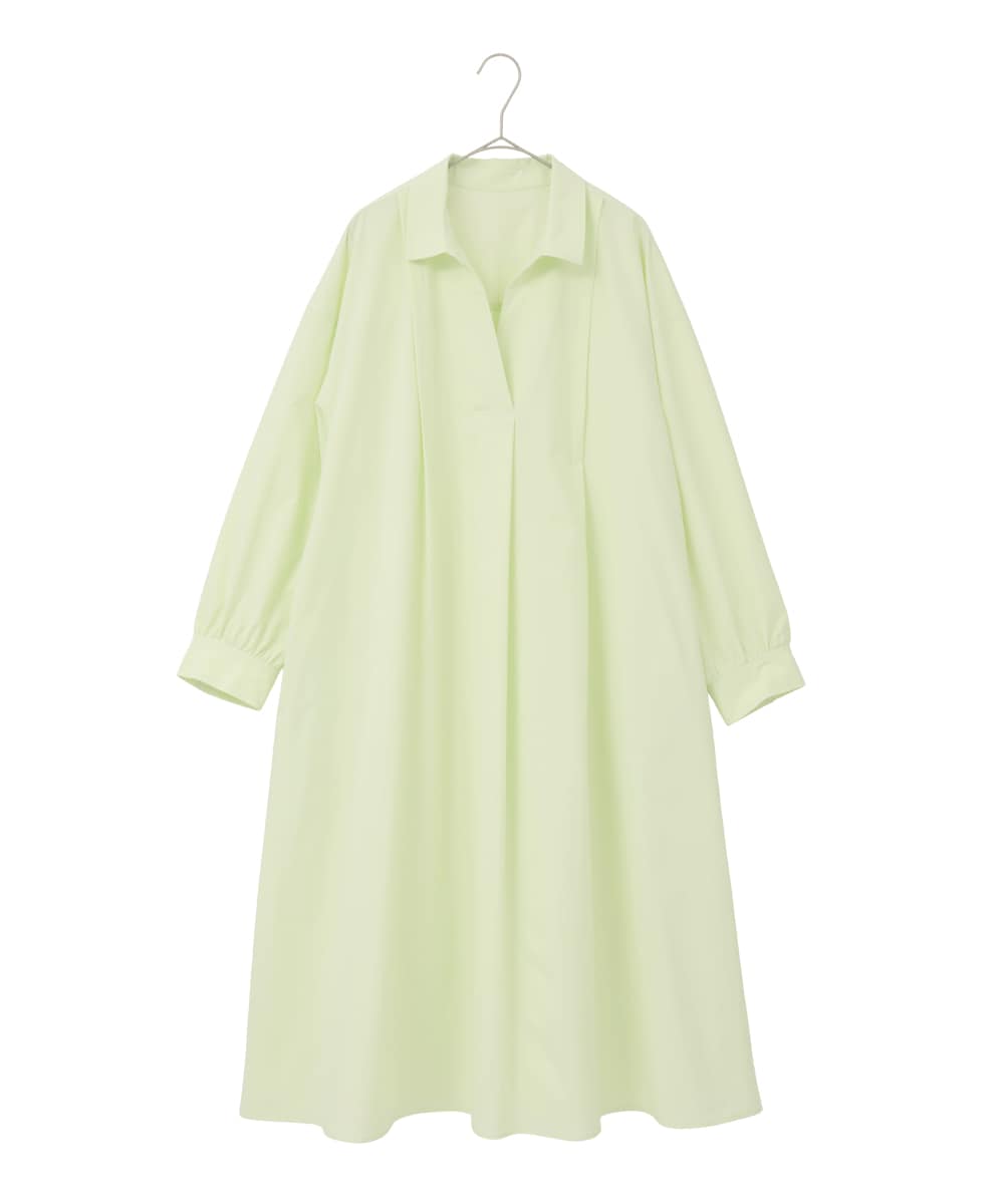ライムグリーンがキレイで柔らかい印象のシャツワンピース。