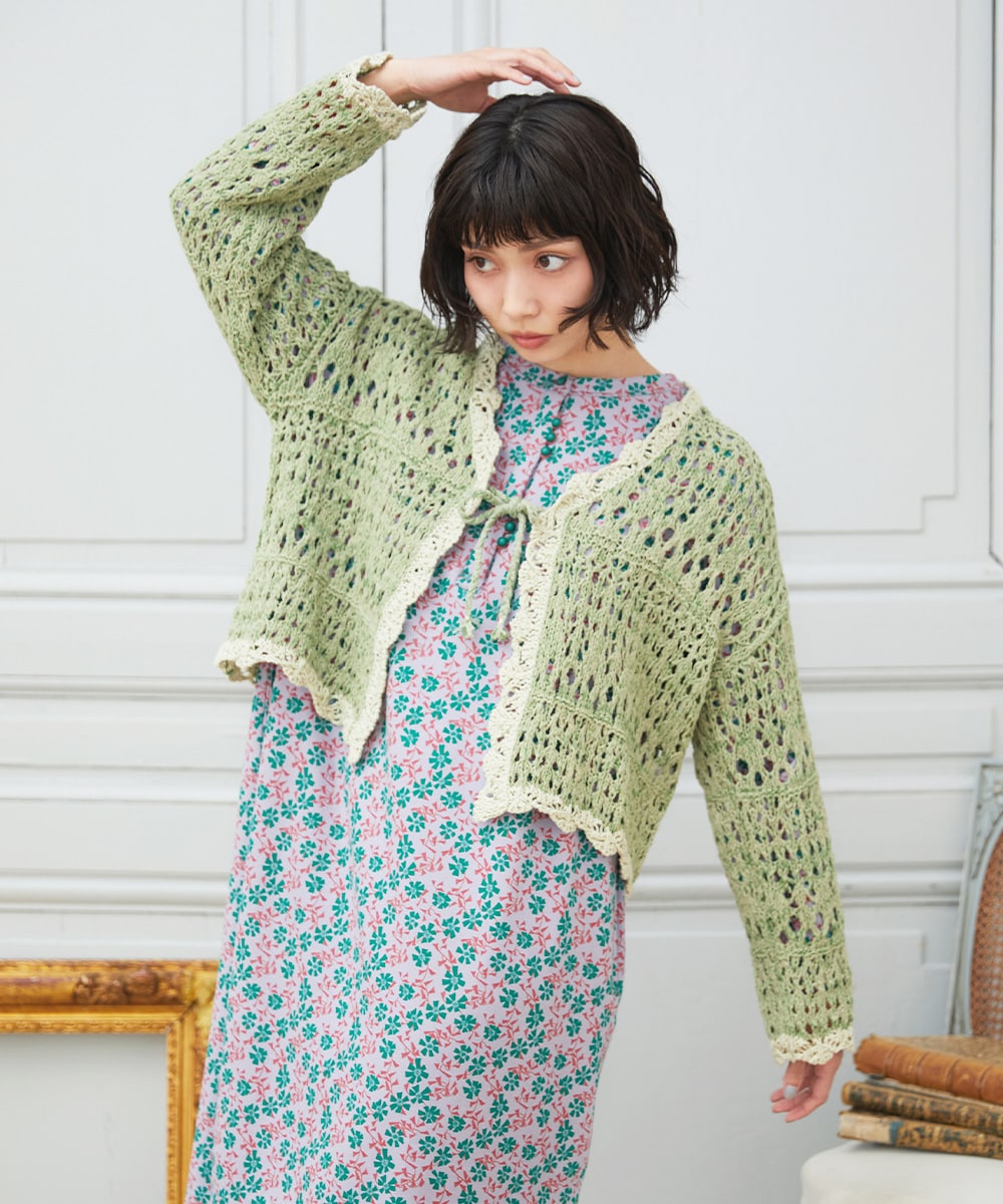 ザックリとした編み地が可愛いカーディガンは