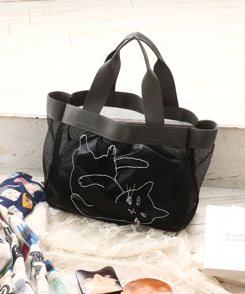 コットン長袖Tシャツは、ポケットからちょこんと顔を出す猫シルエットが魅力。