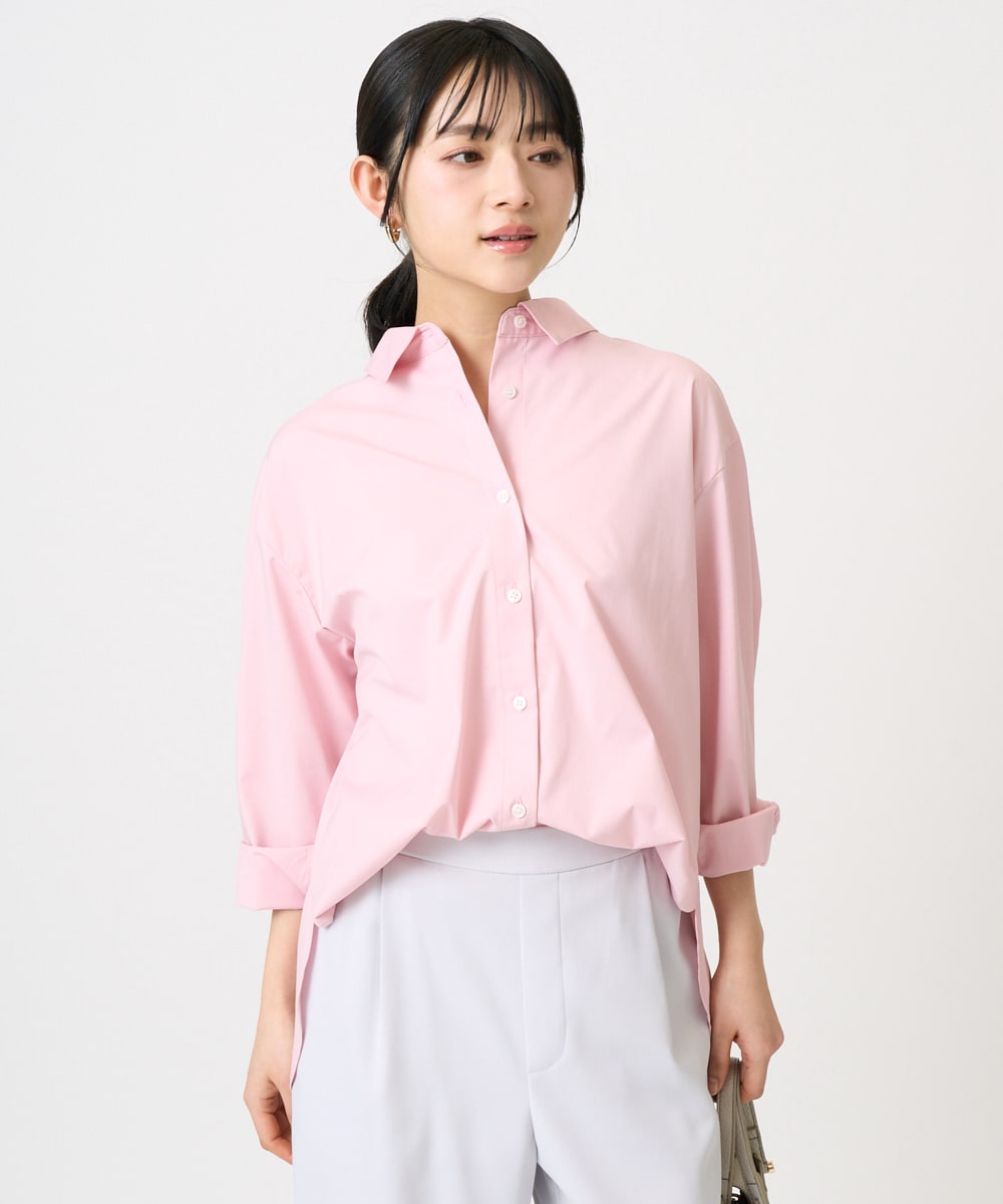 今回はピンクのシャツを合わせて春らしい着こなしに。