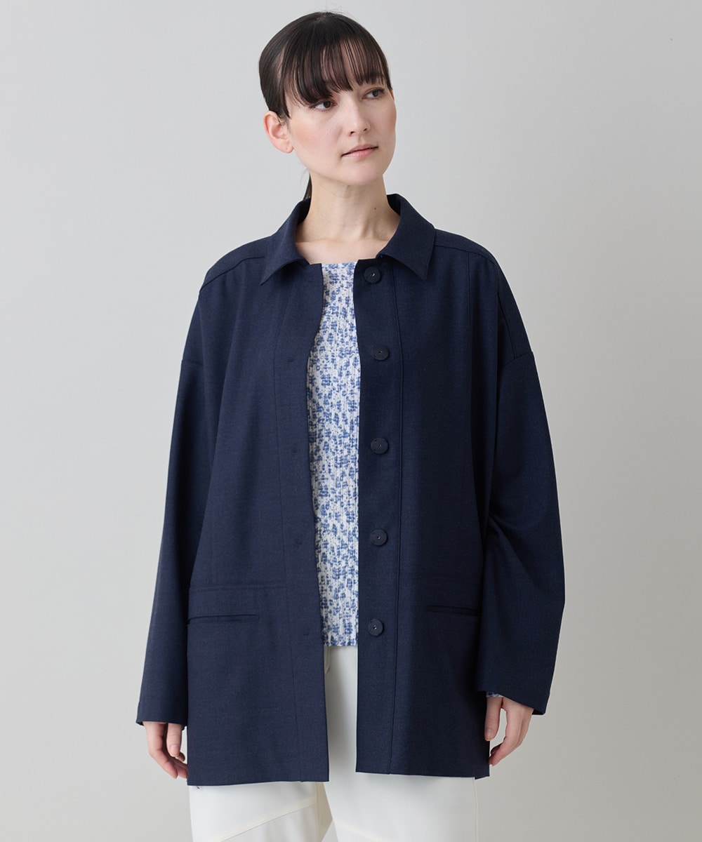 シャツジャケットをブラウス感覚でシンプルに一枚で着用しております