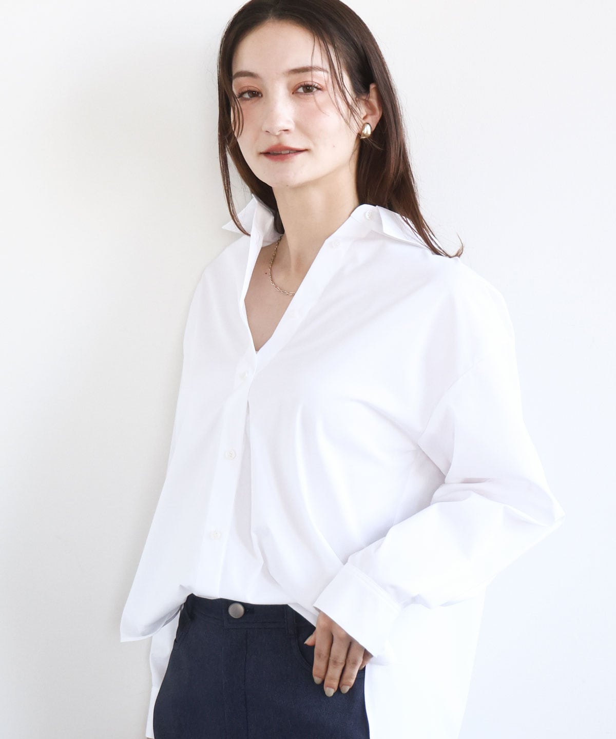 コットン混ベーシックシャツ(無地)は、接触冷感と防シワ性を兼ね備え、洗濯も気軽にできる優秀アイテムです。