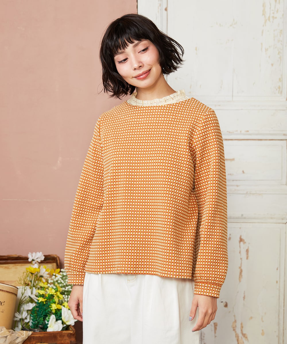 【2WAY】Encrucijadaのチェックジャカードカットソーは、華やかな柄と伸縮性のある素材感でリラクシーながらもきちんと感を演出。