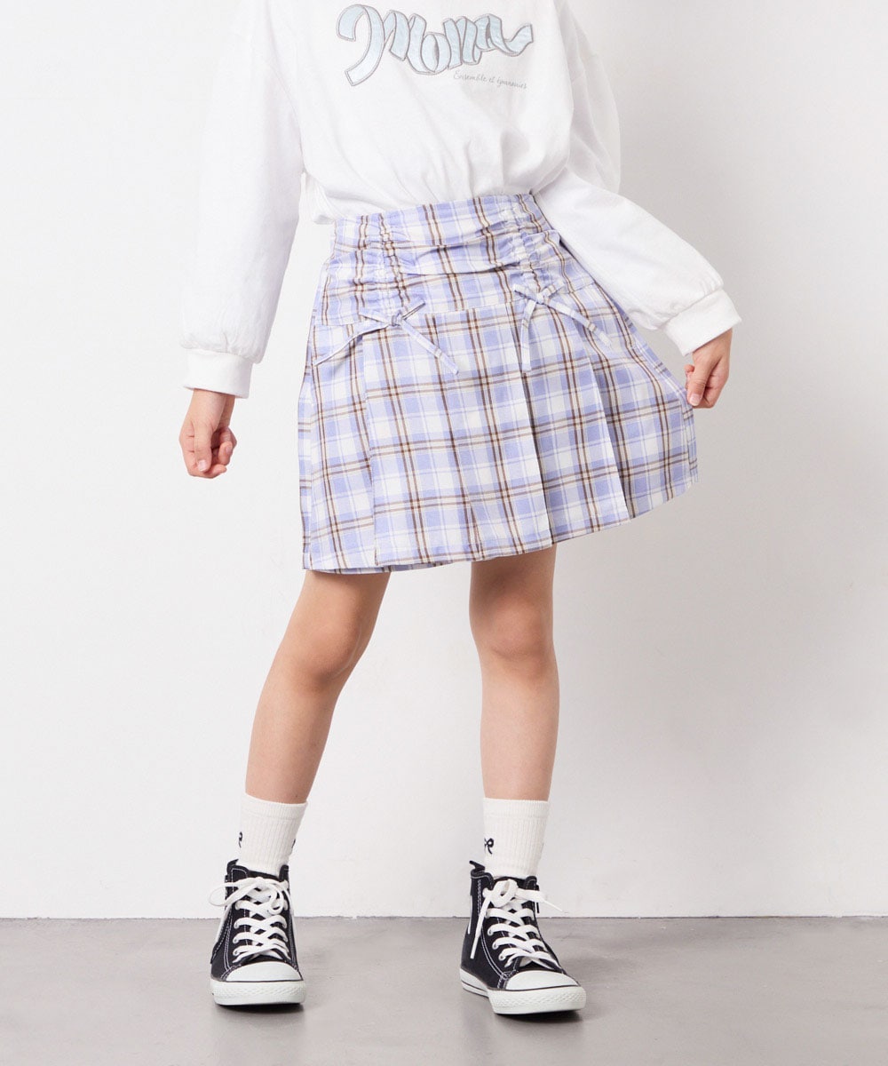レースアップ☓ブルーのチェック柄が女の子っぽくて可愛いです!
