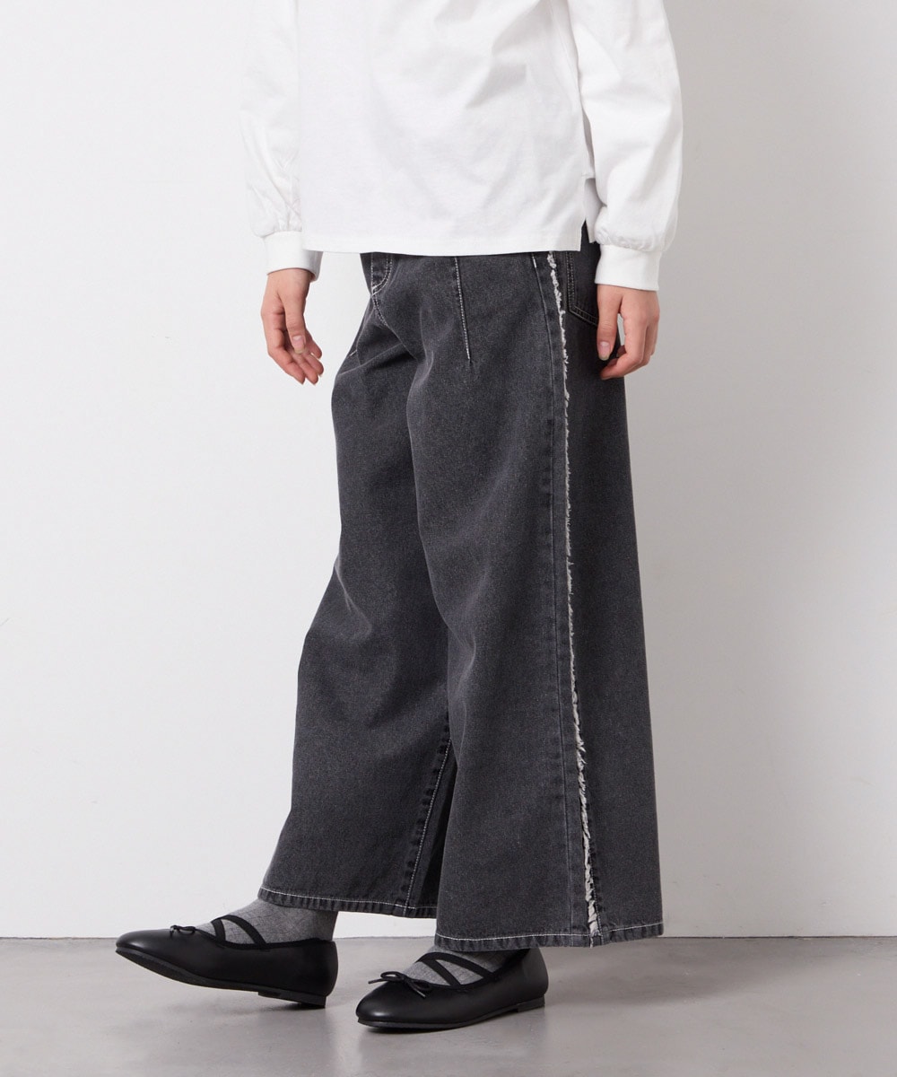 大人気のBLACKデニムのワイドパンツです!サイドのフリンジが女の子らしいデザイン。
