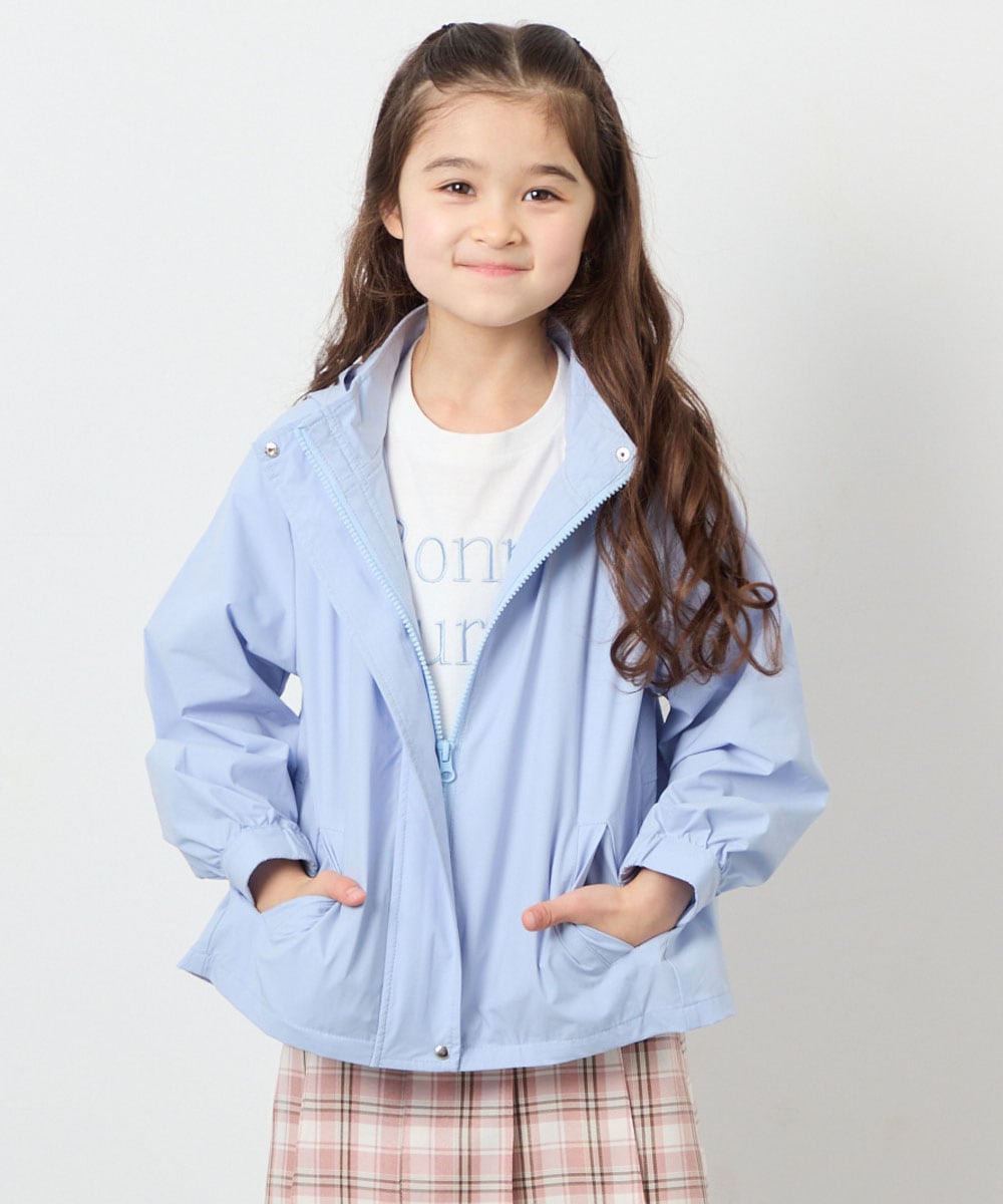 微撥水で、梅雨時期のお出かけや修学旅行などの学校行事にも活躍します。フードが取れるので通学にもバッチリ。