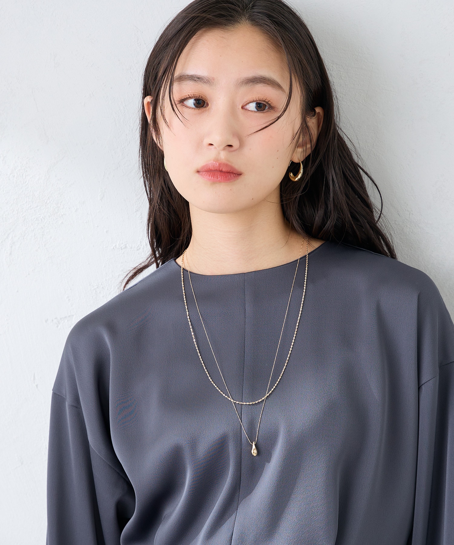 体のラインを拾わない程よいゆとりのあるシルエットでスタイルアップ