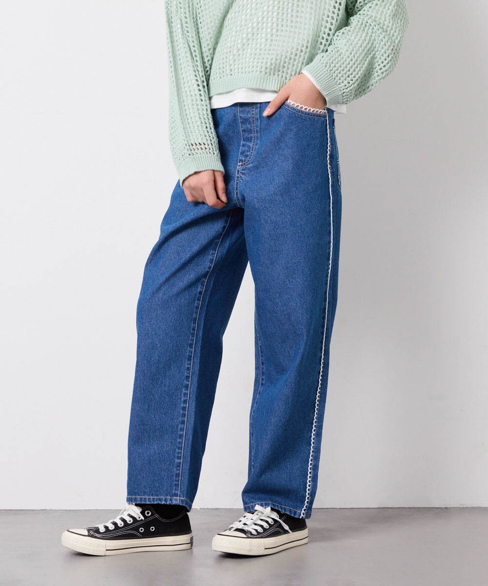 [120-160]【選べるデザイン】デザインワイドストレートデニム