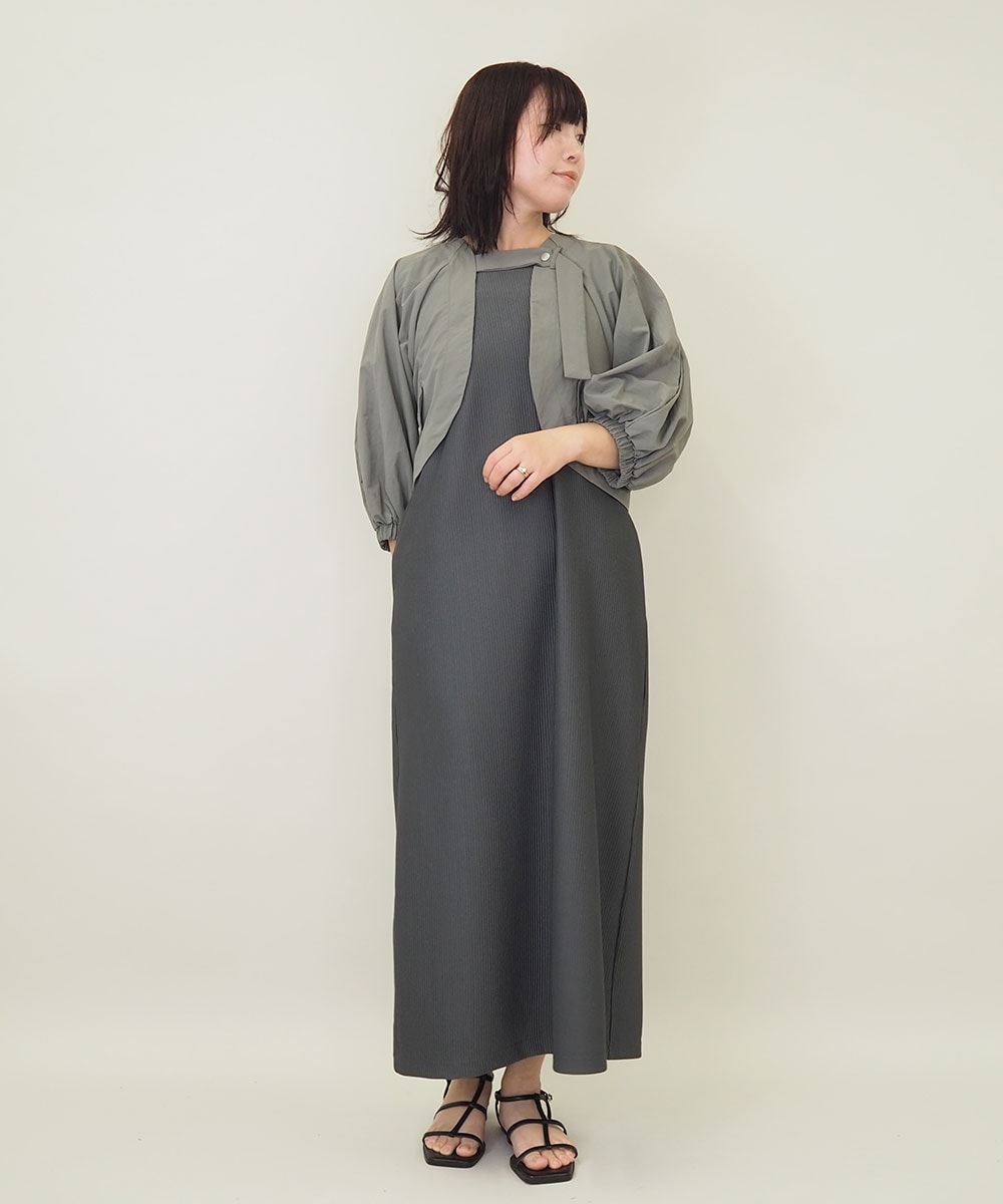 〇ワンピース:ダークグレーを着用