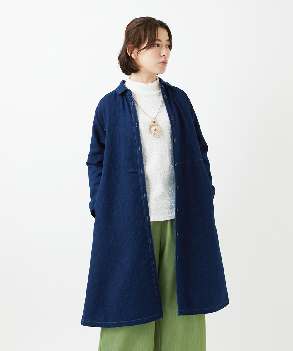 今回は二重織ガーゼデニムのセットアップと合わせました。