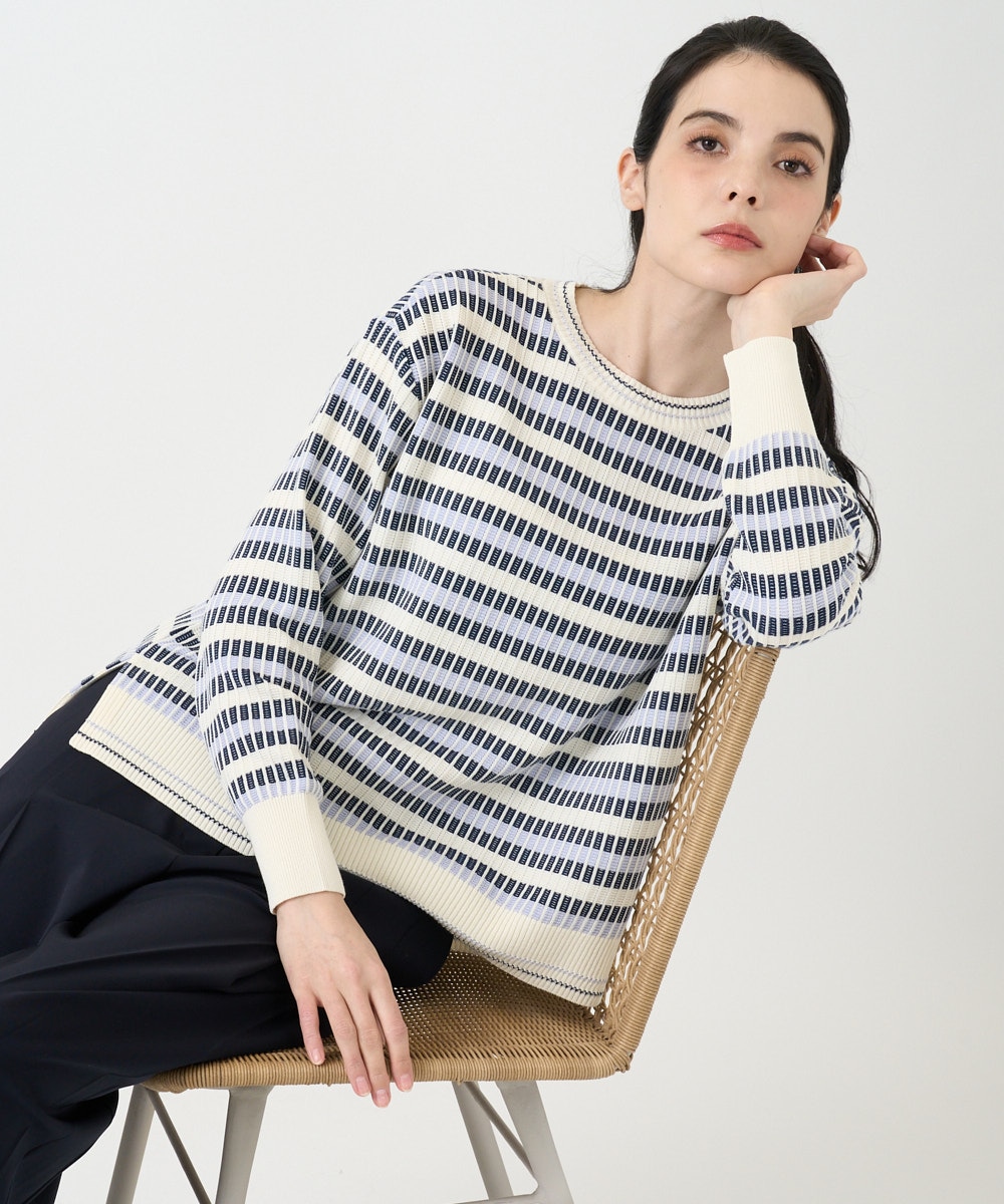 3色のカラーを繊細に組み合せたシングルジャカードのボーダー柄ニット。