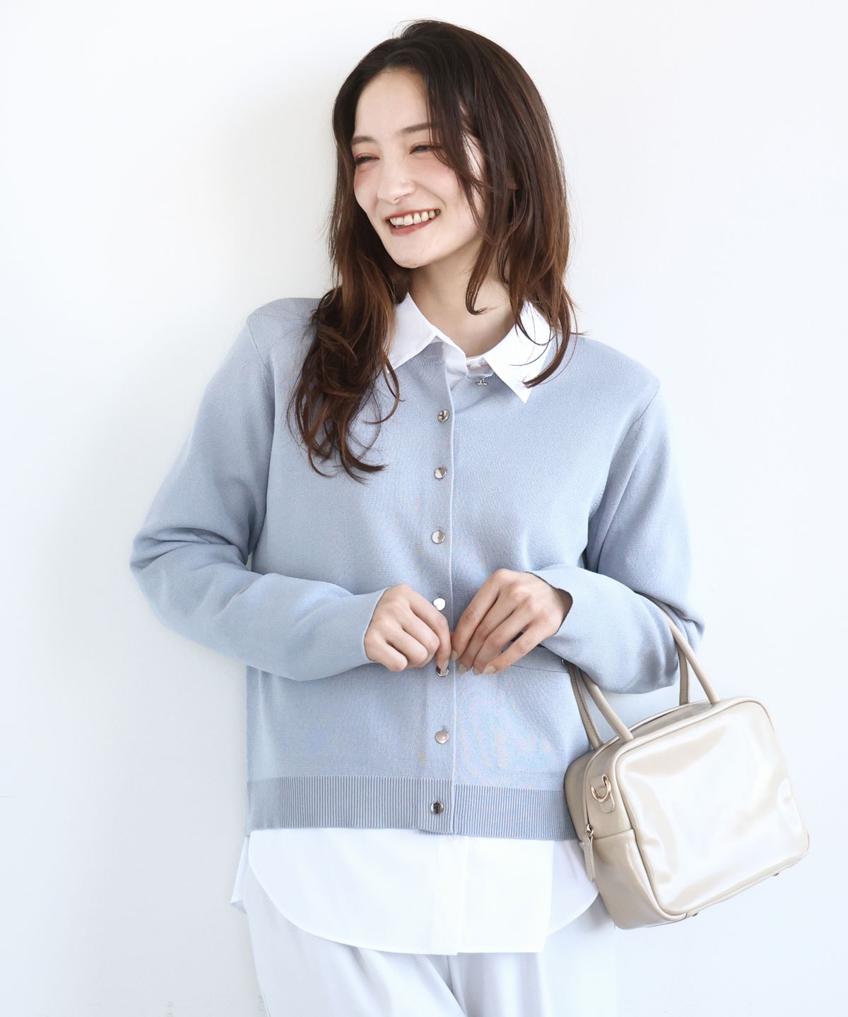 ジャケット見えデザインのニットカーディガンです。