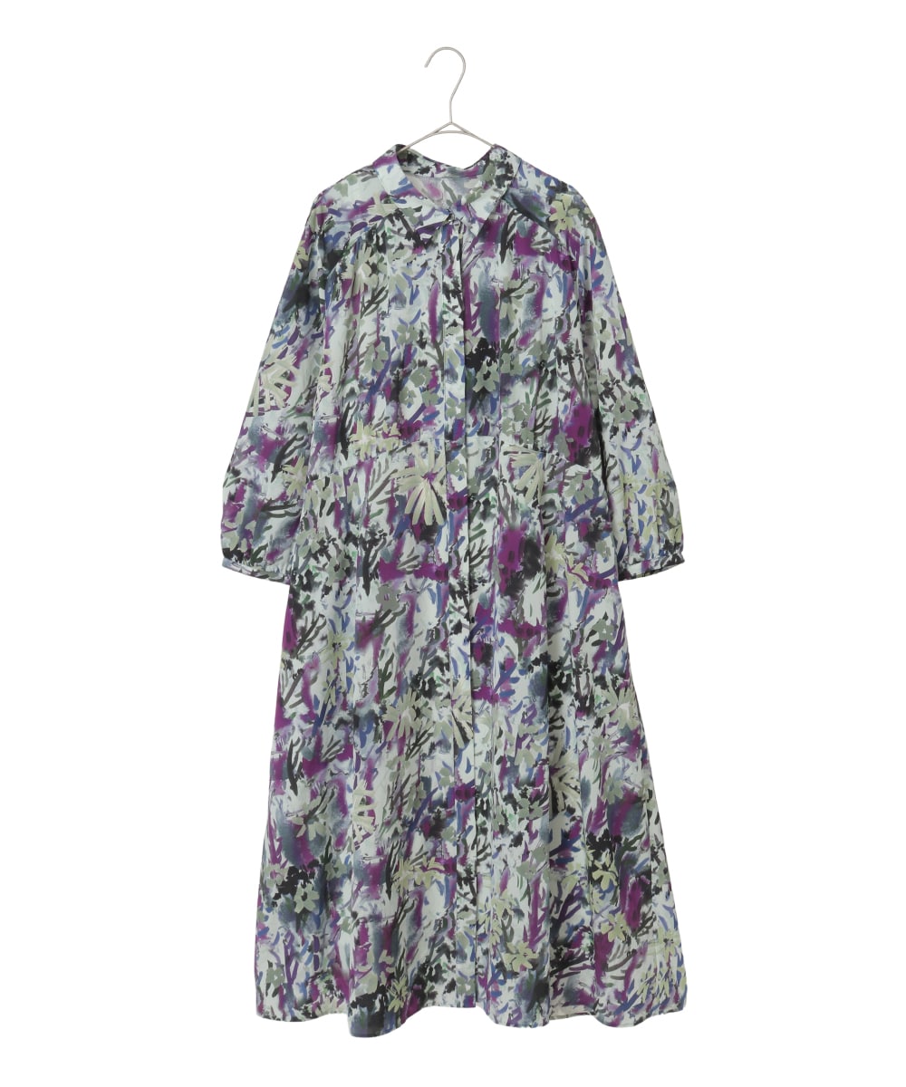 ワンピースは、落ち着いた色合いのフラワープリントが上品で、一枚で華やかに着ていただけます。ウエストの切り替えがポイントになり、スタイルアップ効果があります。