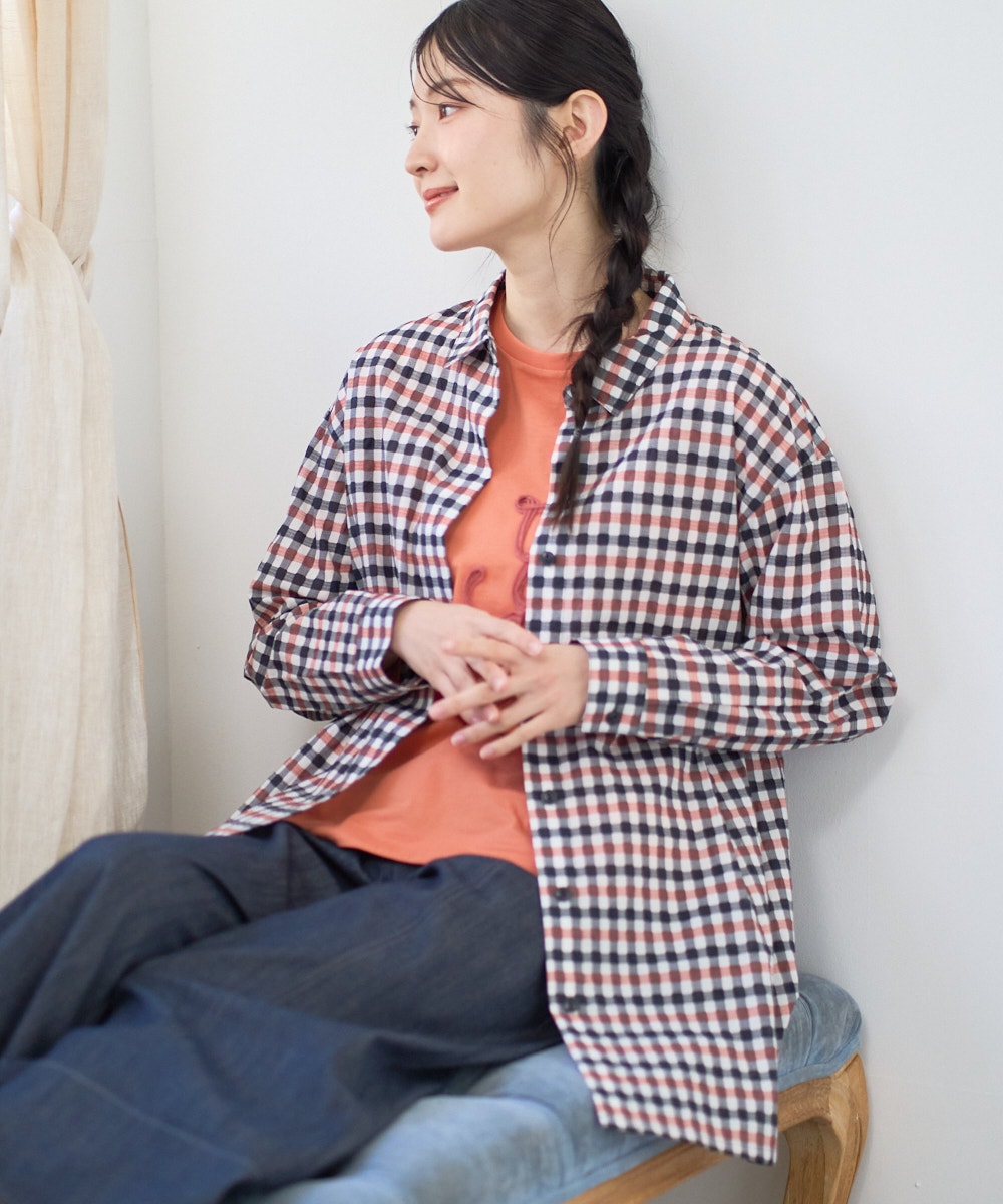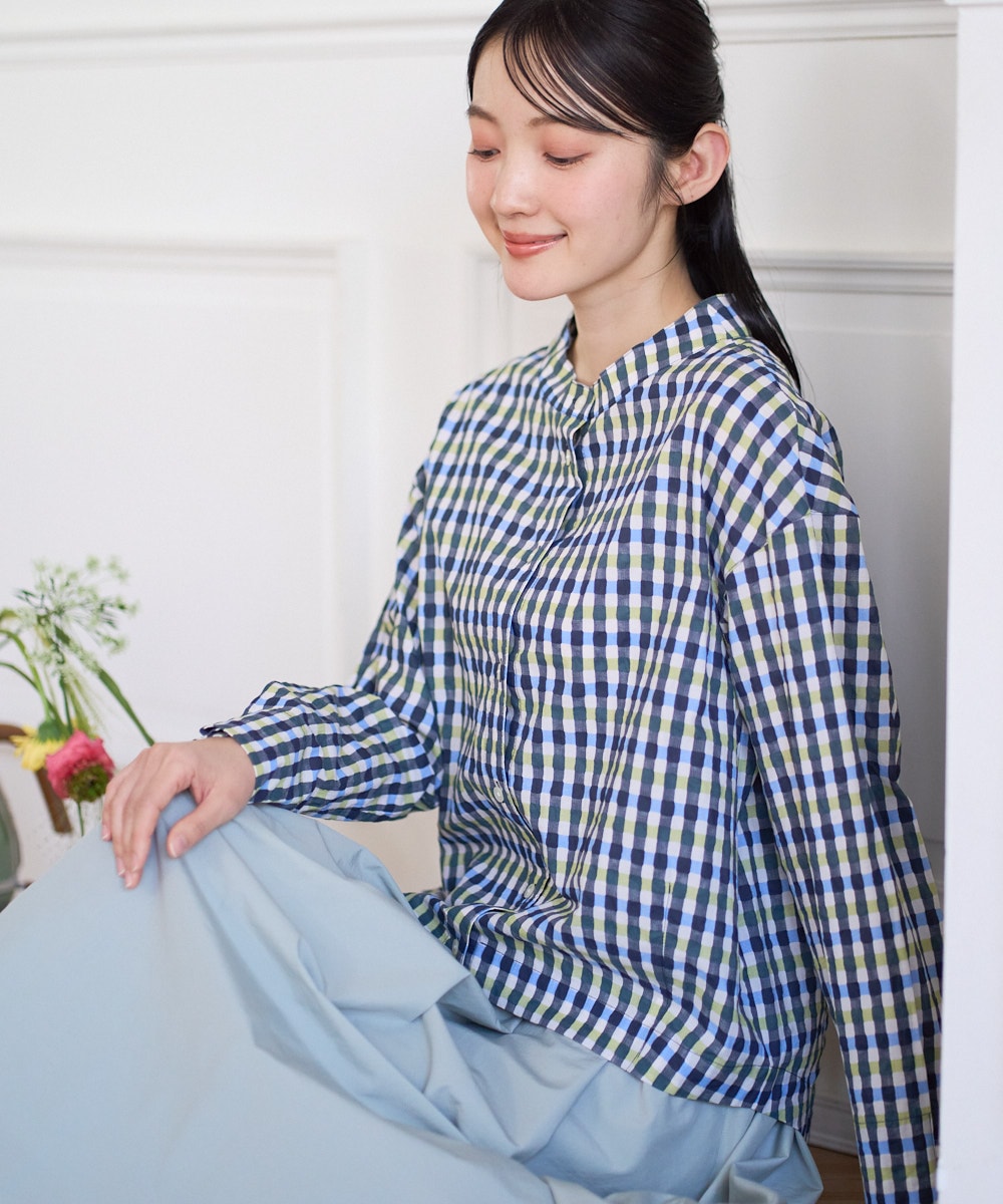 ギンガムプリントブラウスとチュニックブラウスの2型‼︎ゆったりとしたシルエットとラウンドヘム、ウエスト切り替えのタックが女性らしい柔らかさを添え、春夏のスタイリングに最適です。