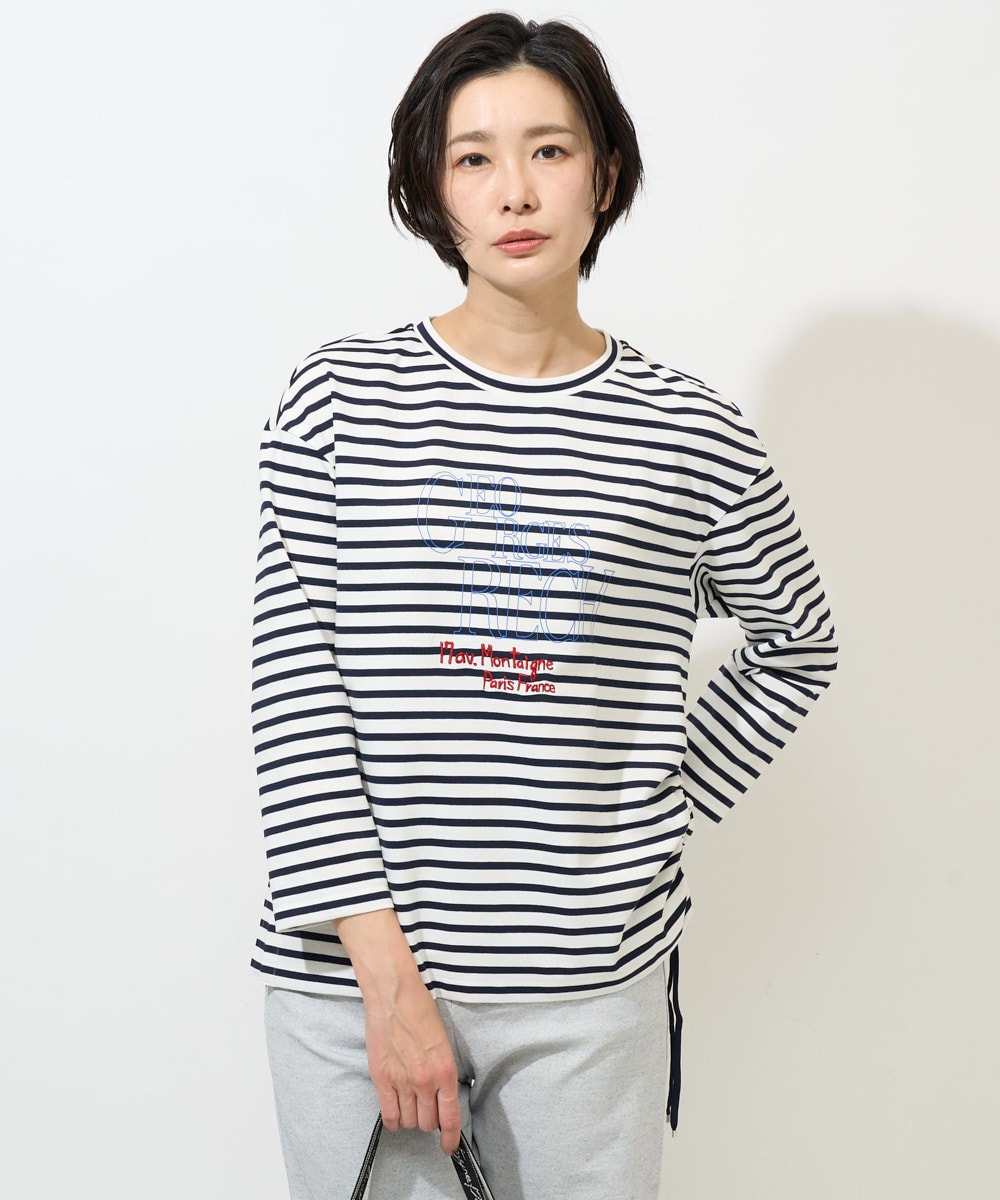 ボーダーカットソーは左裾のドロストで絞ってもok‼︎