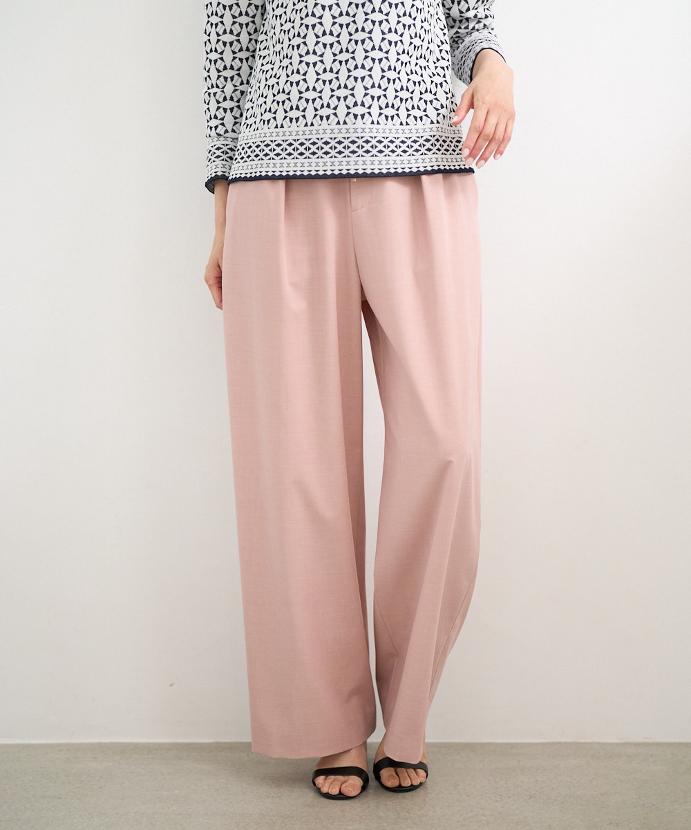 通勤や食事会、ランチ会などのシーンにも適しており、ウエストゴムならではの快適さとスタイリッシュさを両立しています。