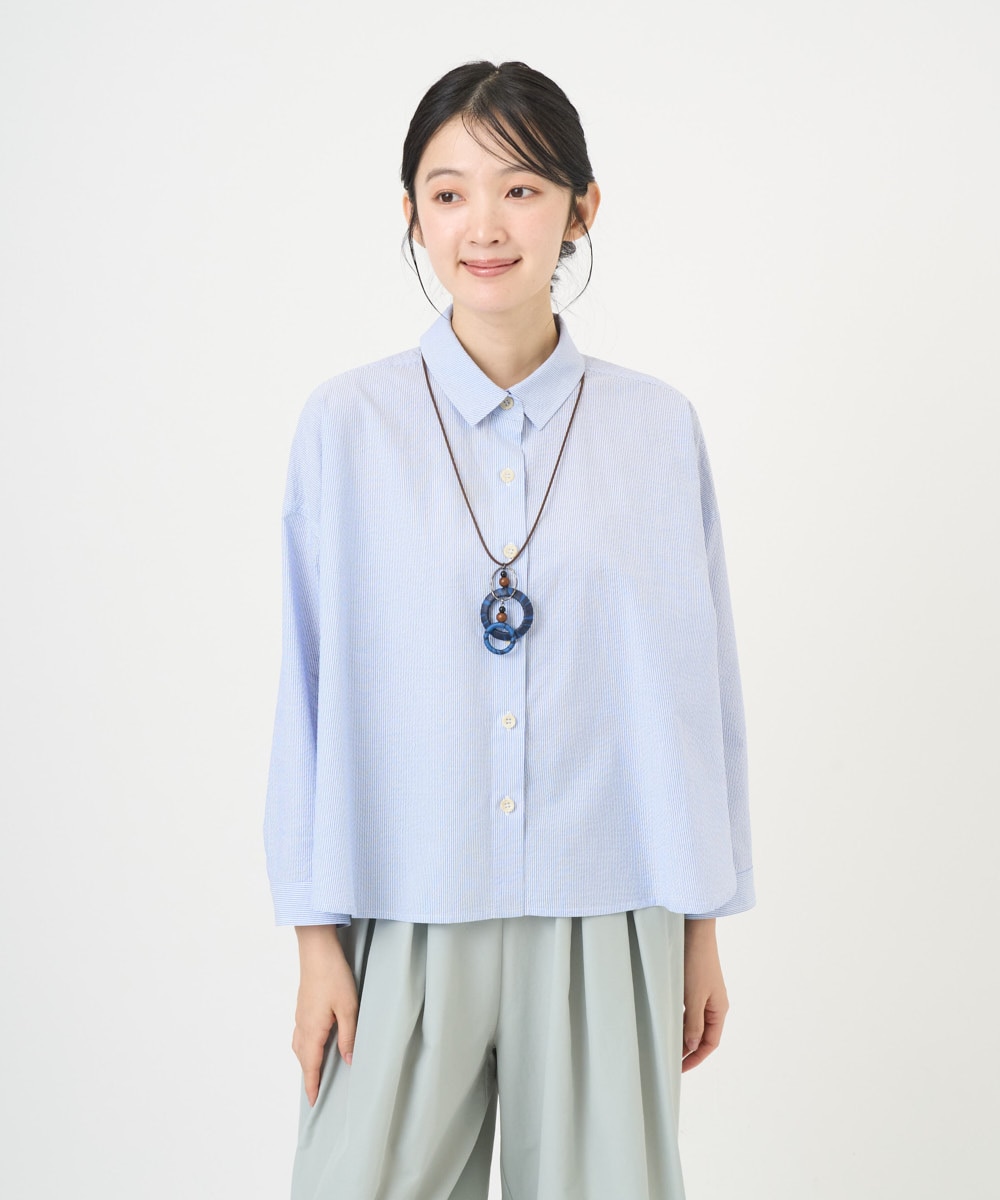 春のおしゃれを格上げするジャンニロのアイテム登場![洗える・日本製]コットンシャーリングストライプブラウスは、細やかなストライプ柄と横長のシルエットが洗練された印象を与え、軽やかな着心地でデイリーに活躍。