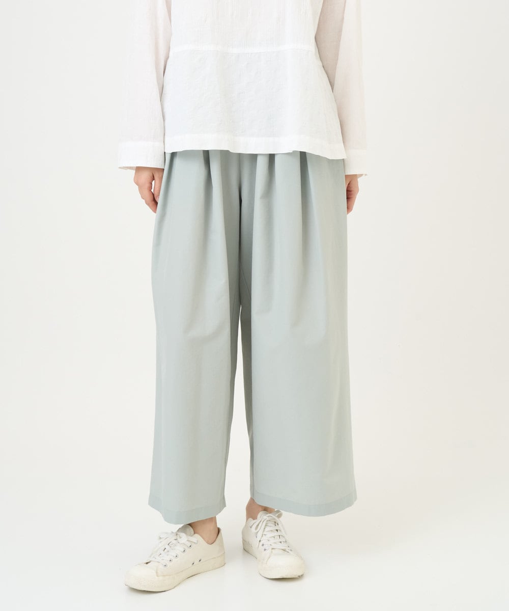 さらに、[洗える]ポリエステルコットングログランパンツは、総ゴム仕様とハリ・コシのある素材感で、体型カバーしながらも大人のこなれ感を演出。
