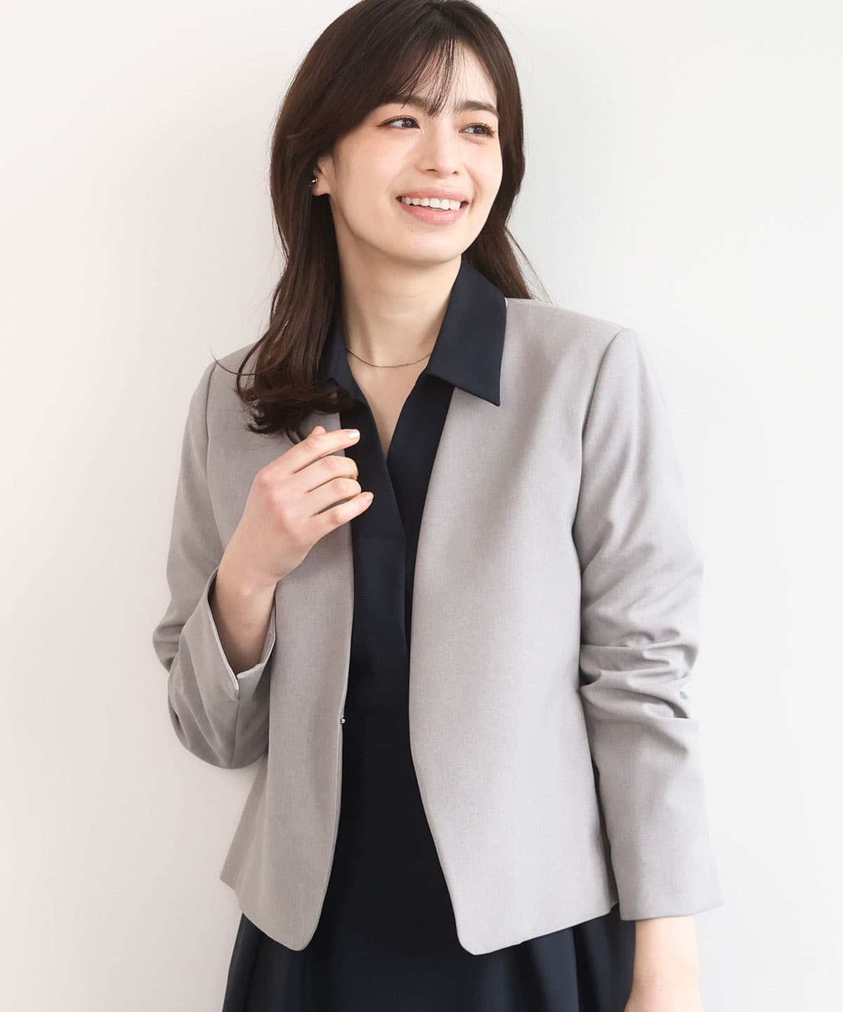 シンプルでノーカラーでも落ち着いた雰囲気になるジャケットです