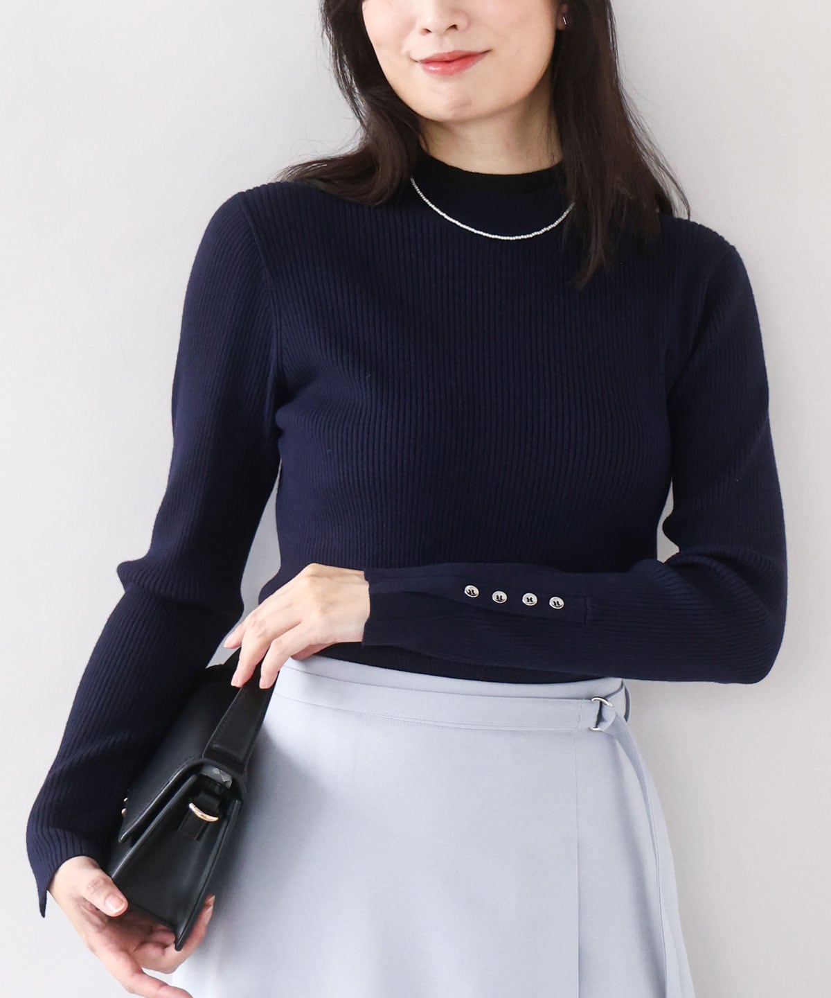 シアー切替えモックネックリブニット/洗える/WEB限定サイズあり