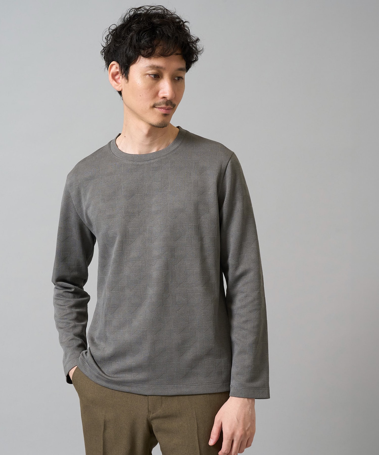 【イージーケア/洗濯機で洗える】幾何ジャカードクルーネックTシャツ 〈ON/OFF SERIES〉