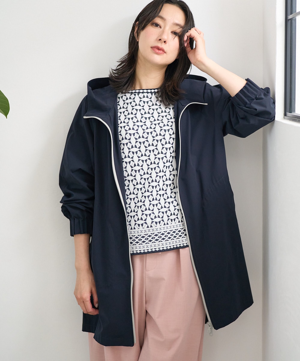 多機能素材を採用した4WAYタフタフーデッドコートは、スポーティなデザインと上品さを兼ね備えた一着です。