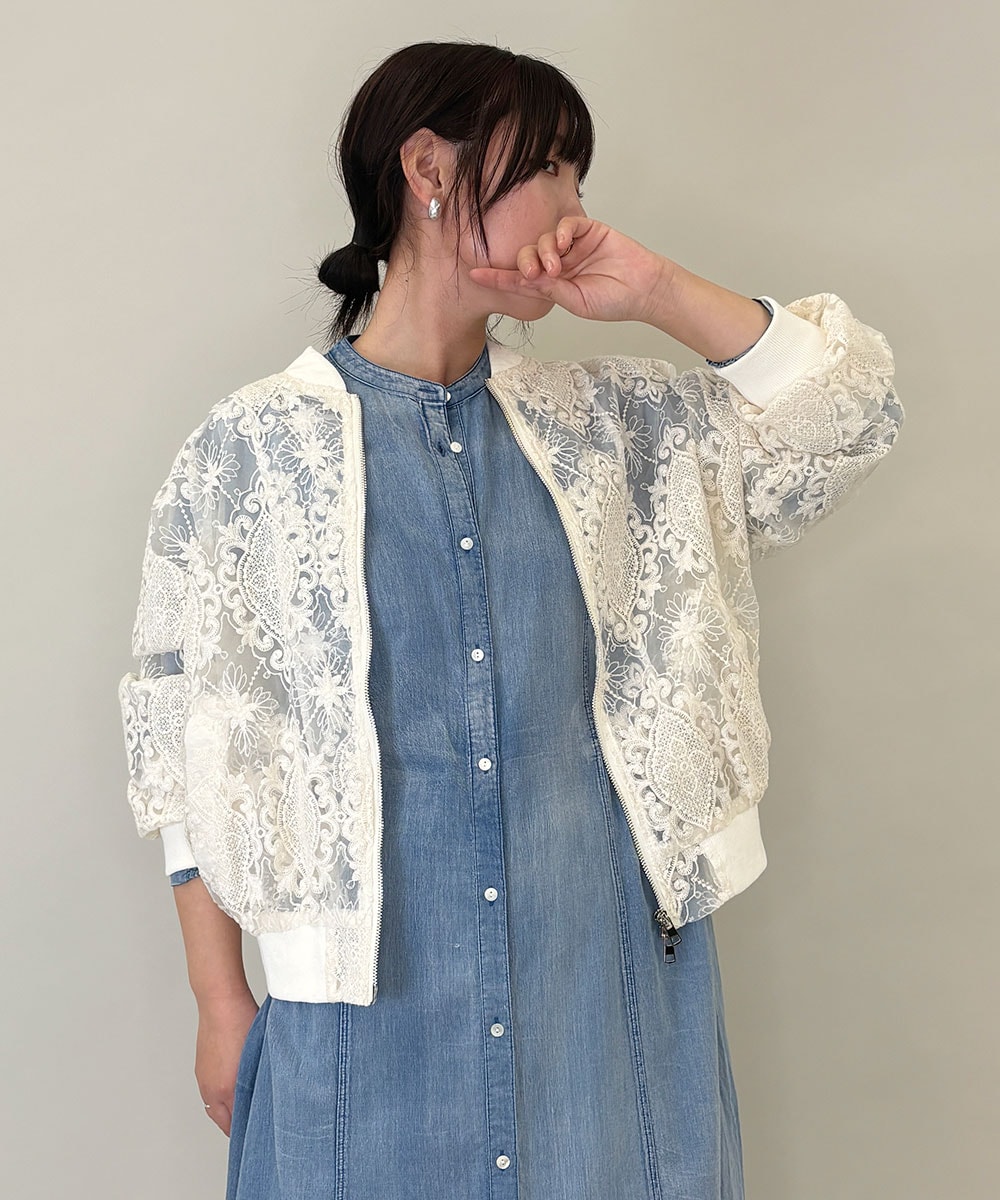 レースブルゾンの透け感がやさしく、