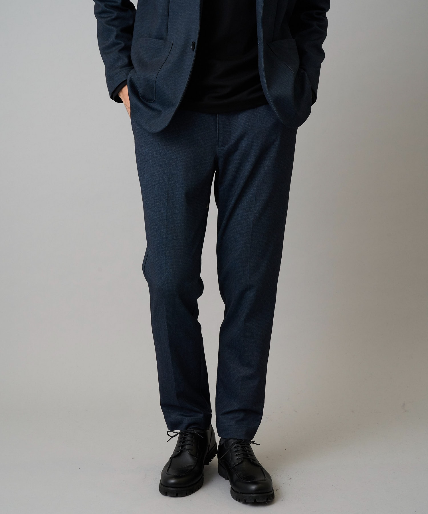 【イージーケア/ストレッチ】メランジポンチスマートスラックス【洗濯機で洗える】通勤/ビジネス/ジャケット〈ON/OFF SERIES〉